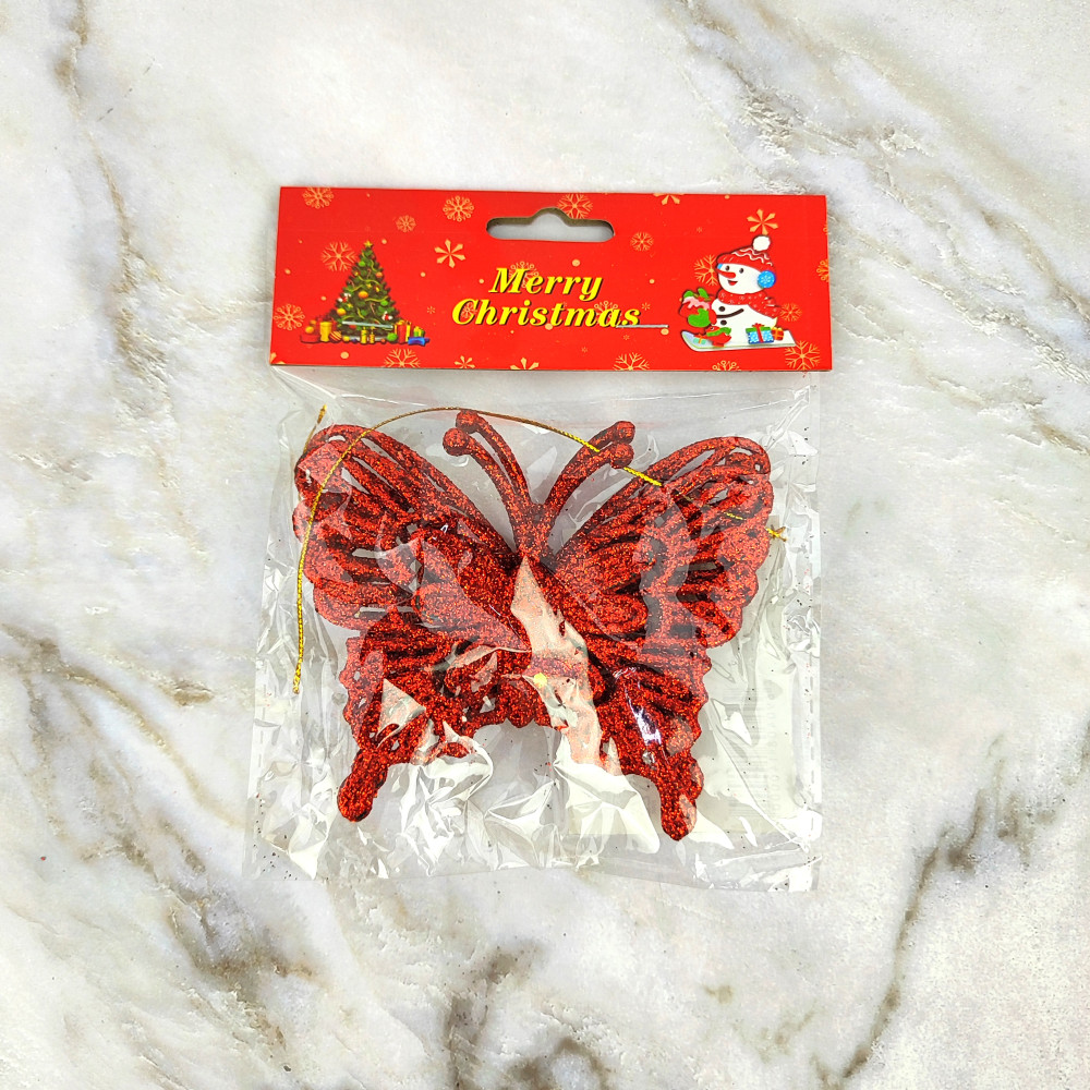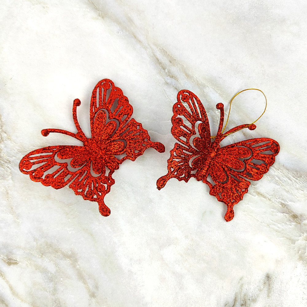 Набор елочных игрушек 2 шт 10х9 см красный Бабочка SYLKL-491983 Волшебная страна