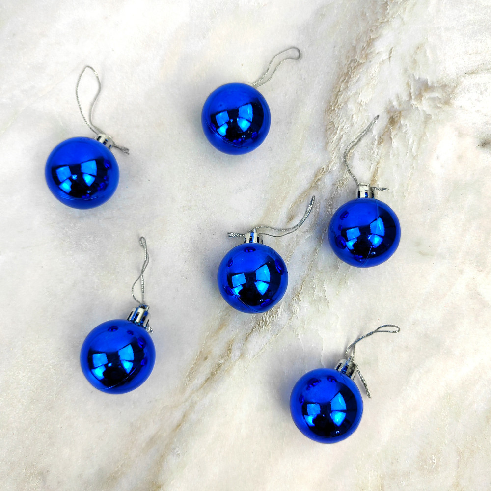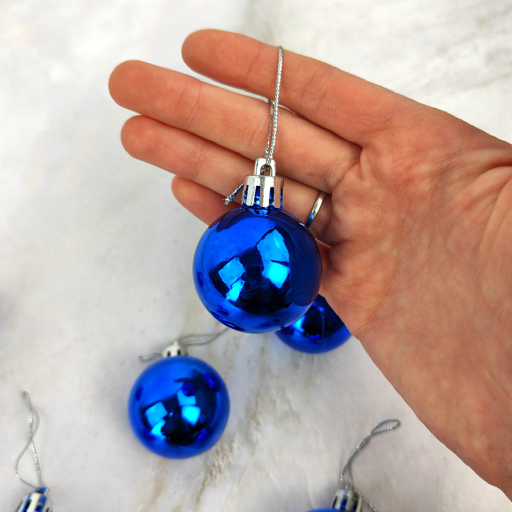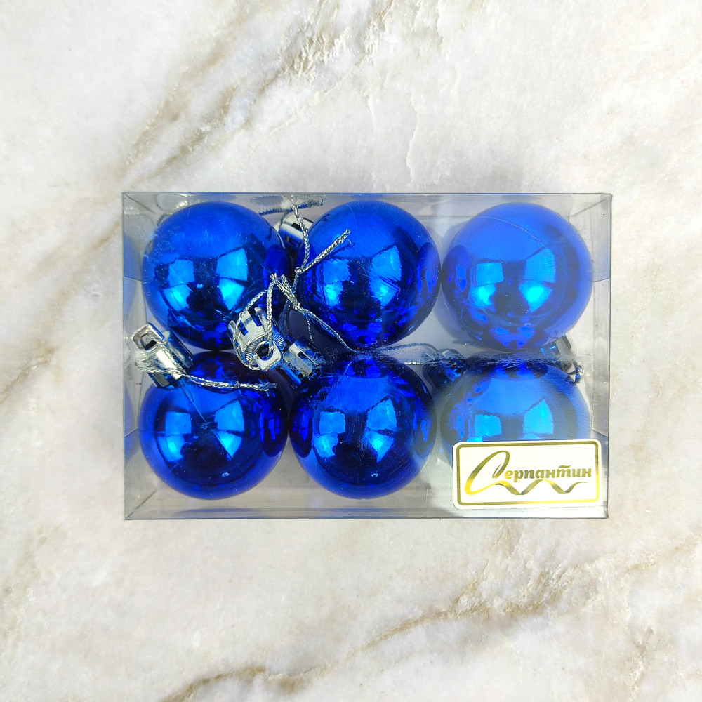 Набор пластиковых шаров d-4 см 6 шт синий Глянец Серпантин