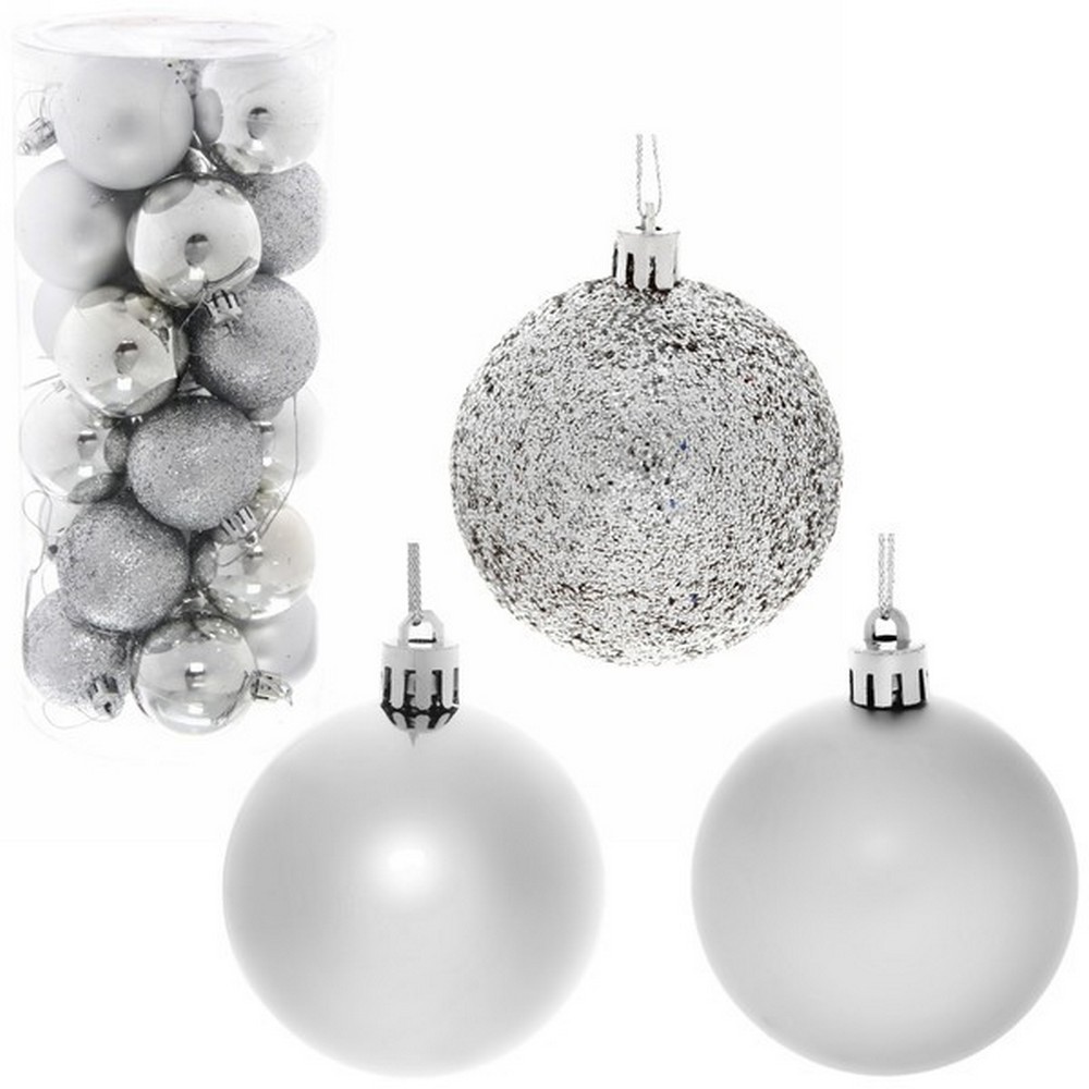 Набор пластиковых шаров d-6 см 24 шт серебро Микс фактур Серпантин