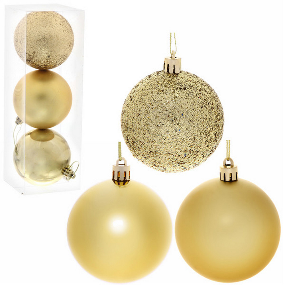Набор пластиковых шаров d-8 см 3 шт золотой Микс фактур Серпантин