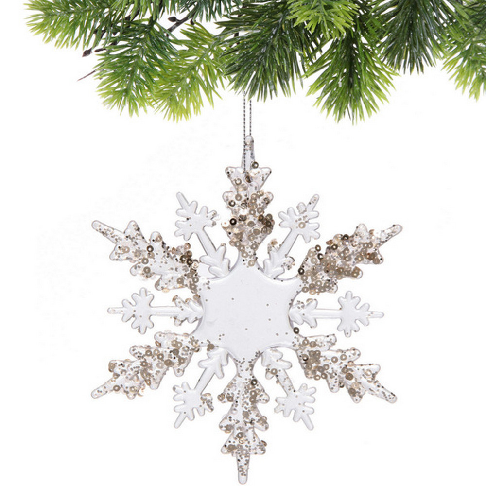 Украшение елочное пластик 13,5 см белый золотой блеск Волшебный снегопад Серпантин