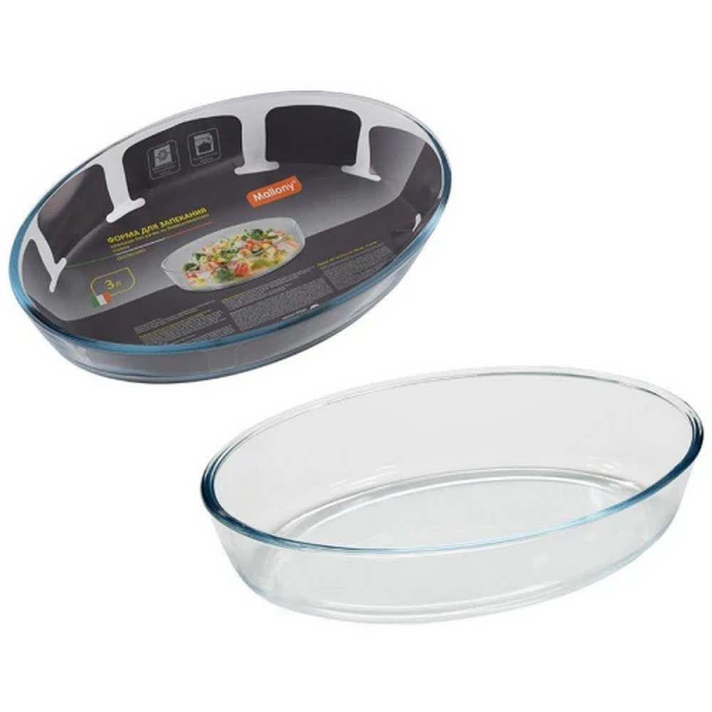 Блюдо стеклянное для запекания 3000 мл овальное Cristallino Mallony
