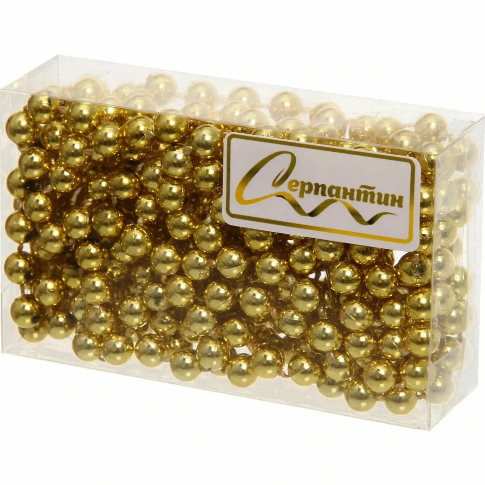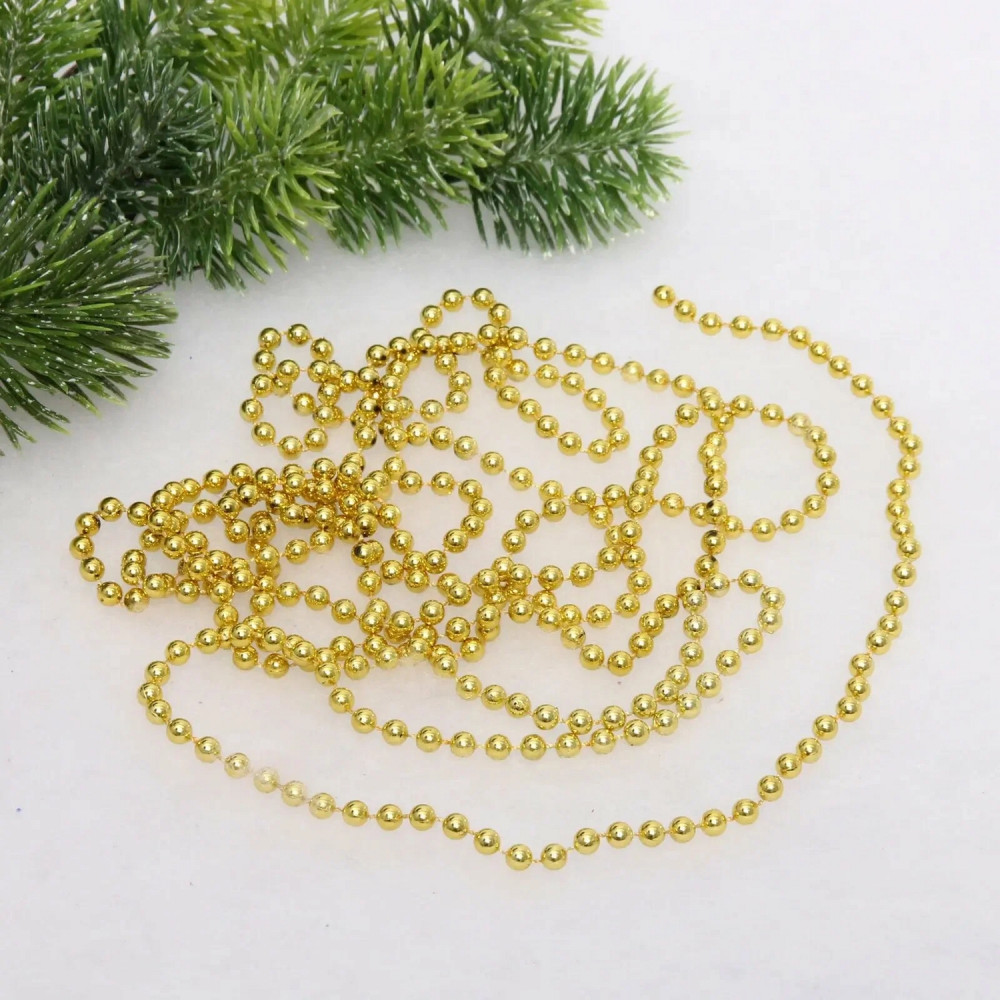Бусы пластиковые на елку 2,7 м d-6 мм золото Шарик Серпантин
