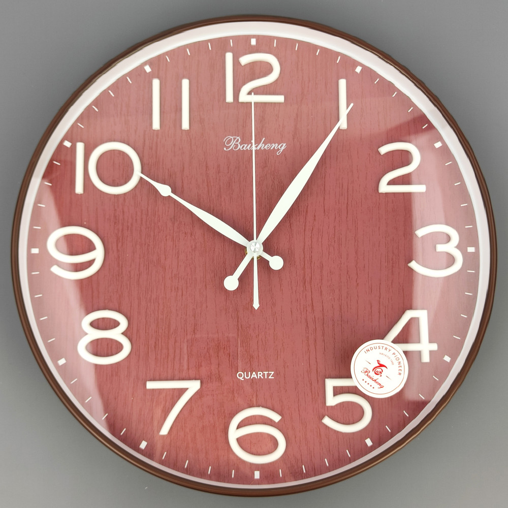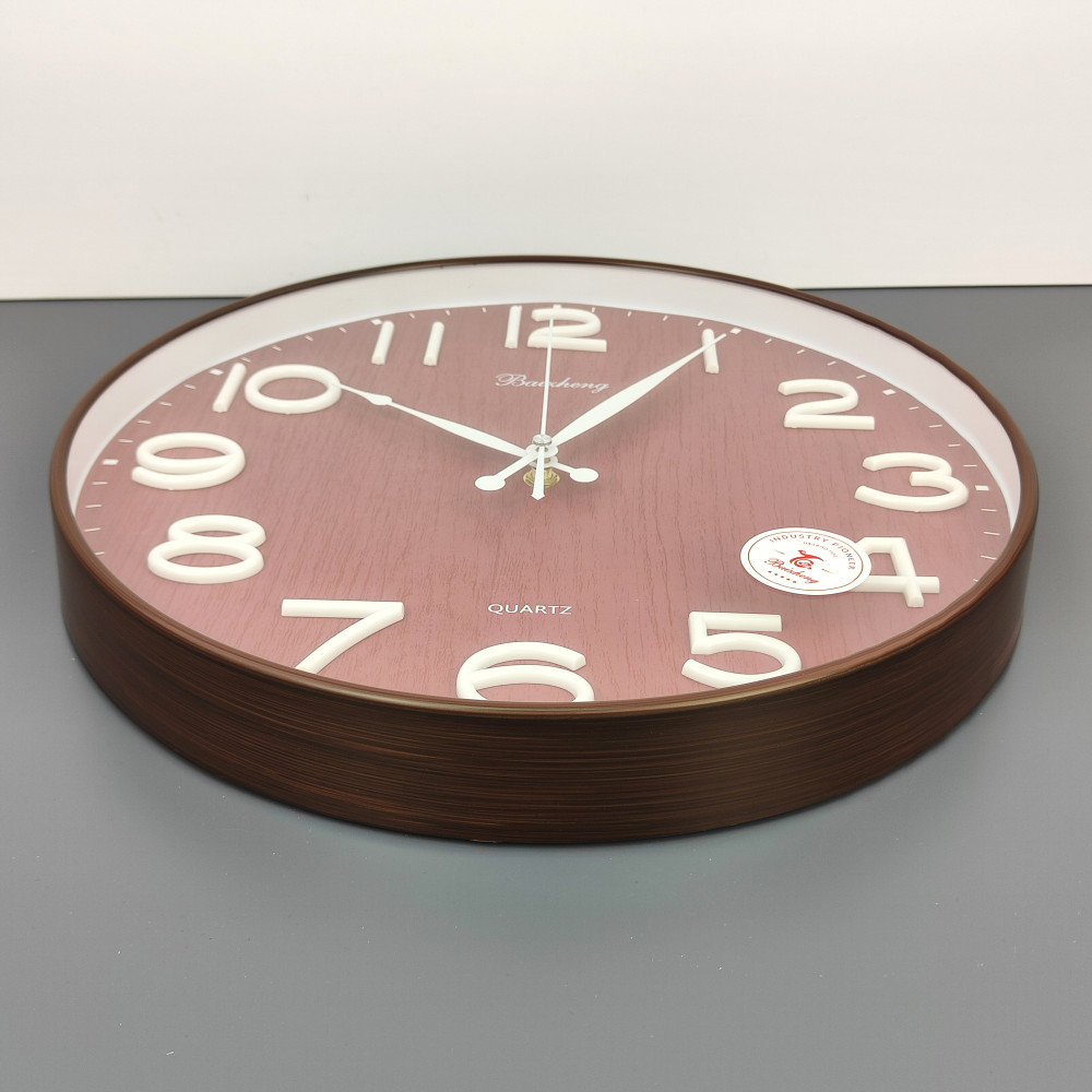 Часы пластиковые настенные кварц 34 см круг бордовый Baizheng