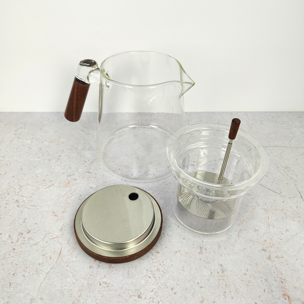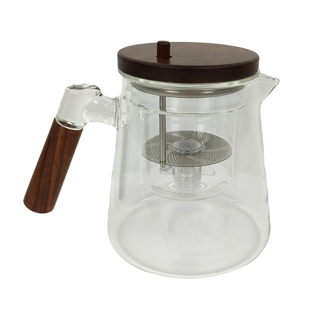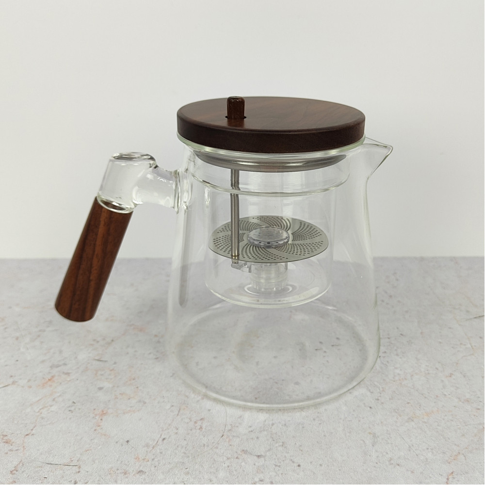 Чайник стеклянный заварочный 1000 мл крышка дерево фильтр кнопка слива BZ-CH140 Baizheng
