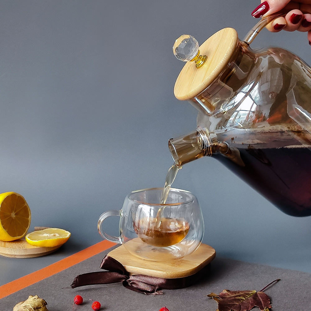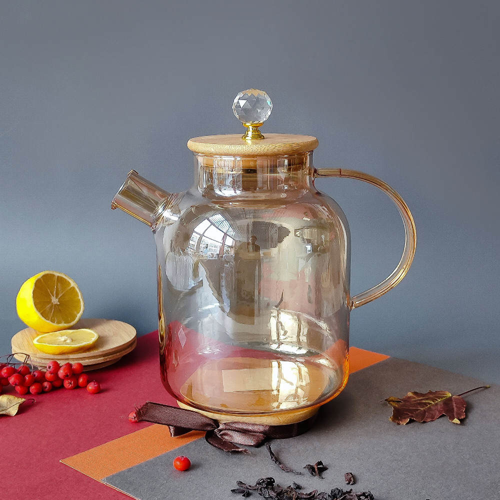 Чайник стеклянный заварочный 1800 мл крышка бамбук фильтр пружинка BZ-CH123 Baizheng