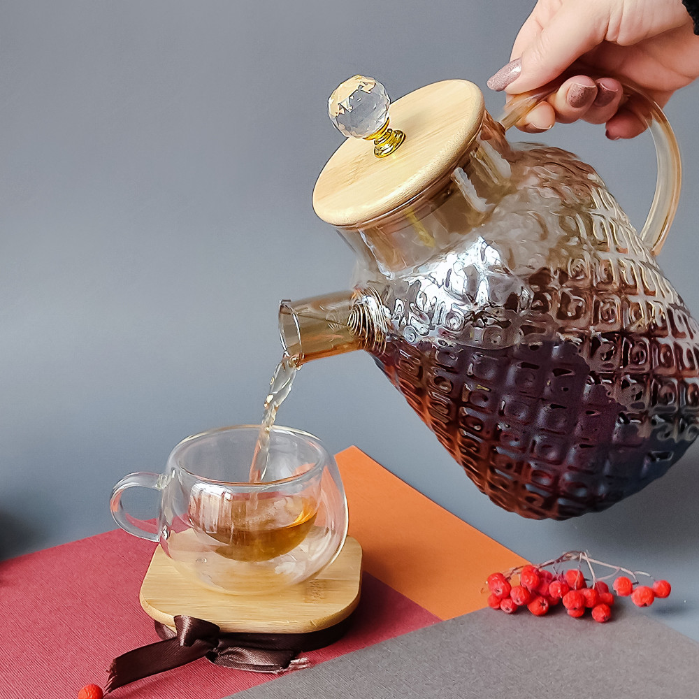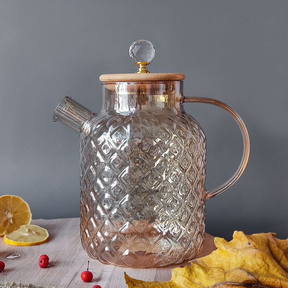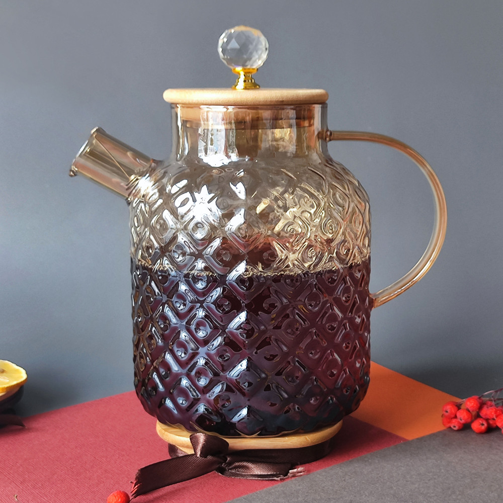 Чайник стеклянный заварочный 1800 мл крышка бамбук фильтр пружинка BZ-CH130 Baizheng