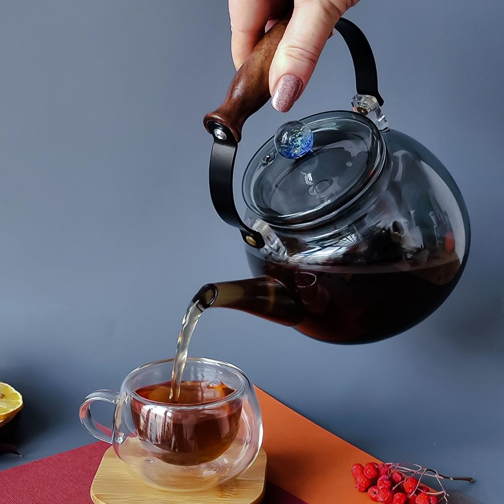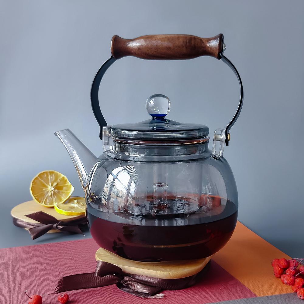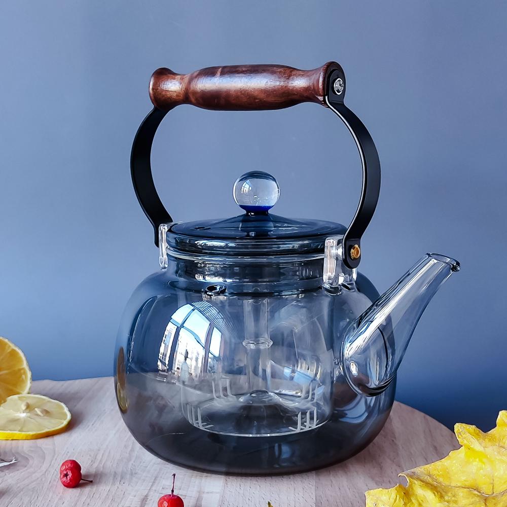 Чайник стеклянный заварочный 1000 мл крышка стекло фильтр стекл ручка дерево BZ-CH137 Baizheng