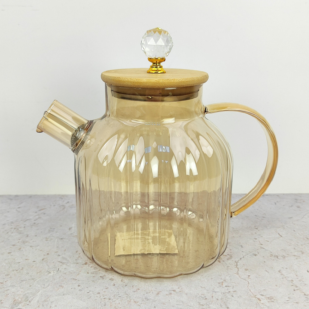 Чайник стеклянный заварочный 1500 мл крышка бамбук фильтр пружинка BZ-CH15 Baizheng