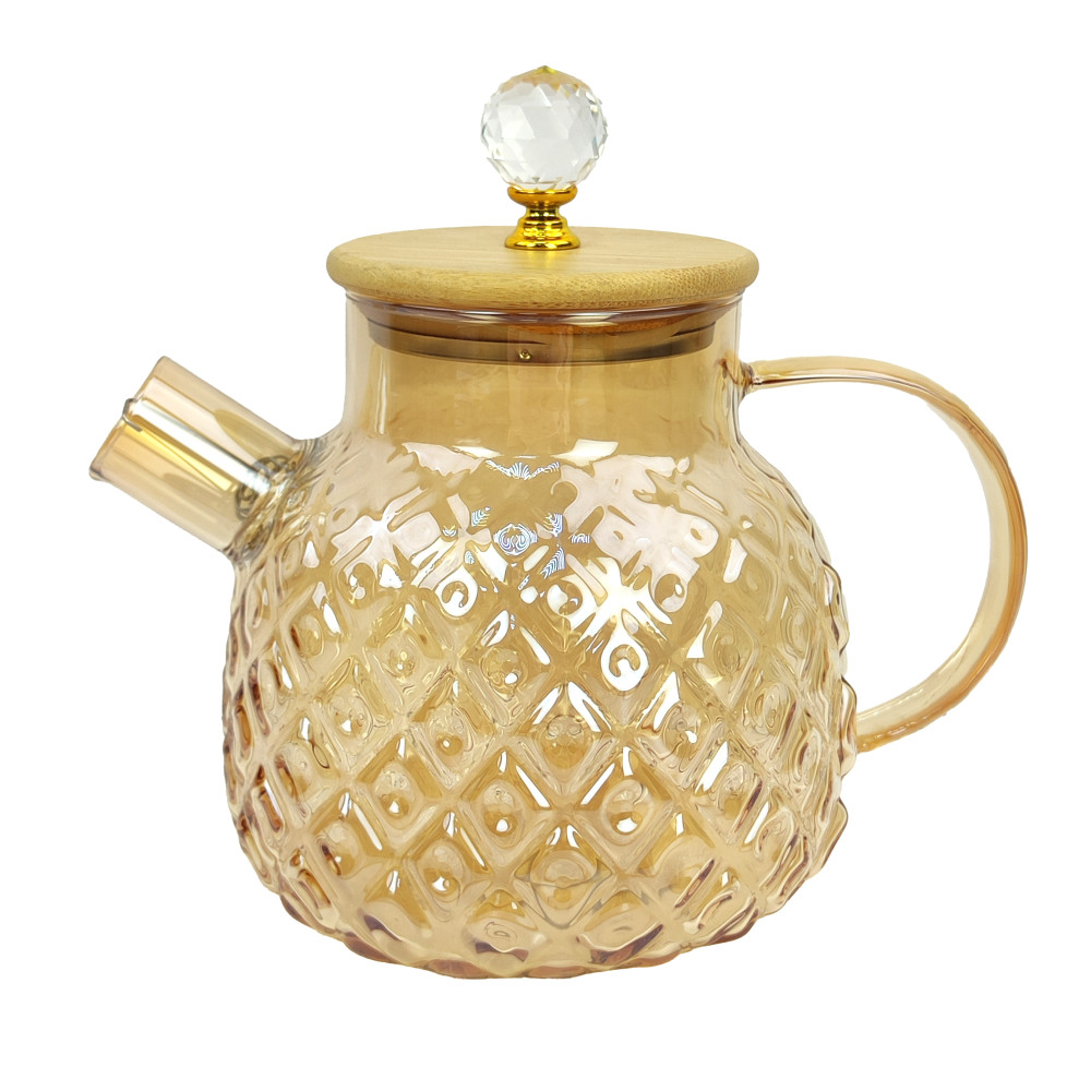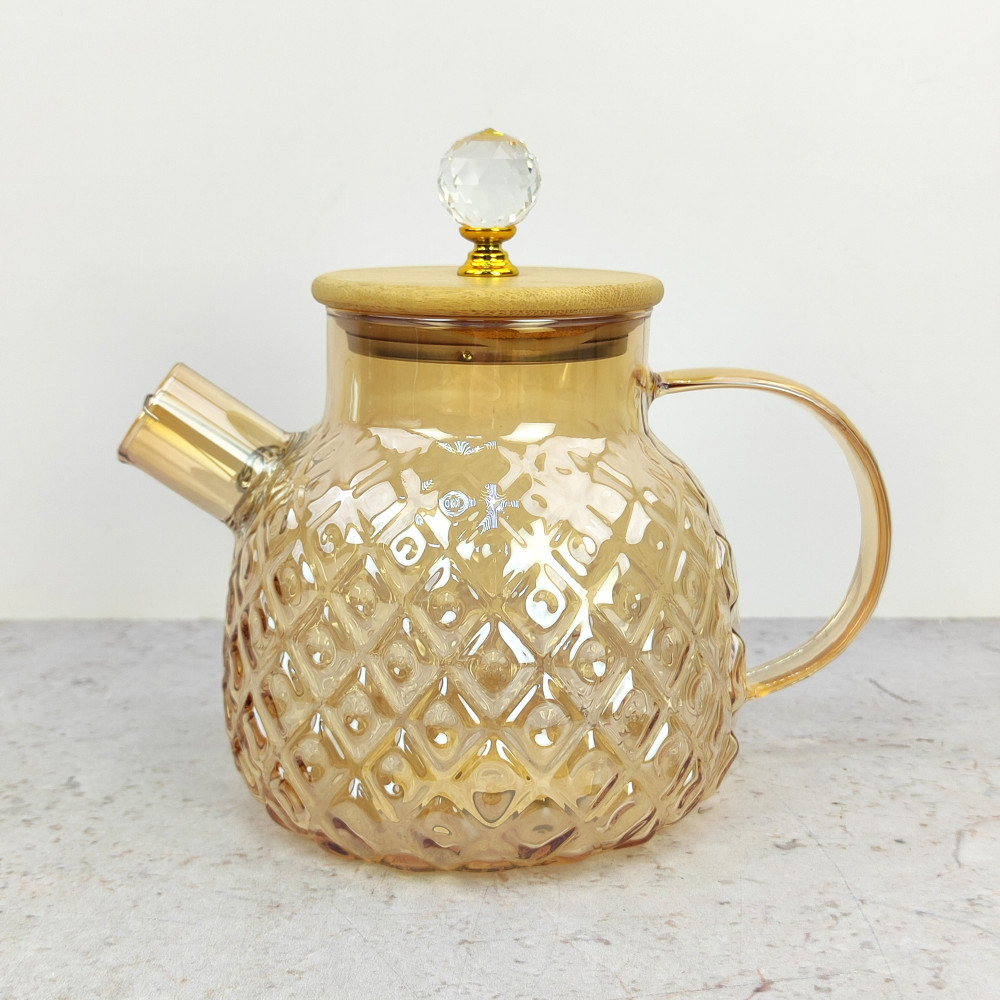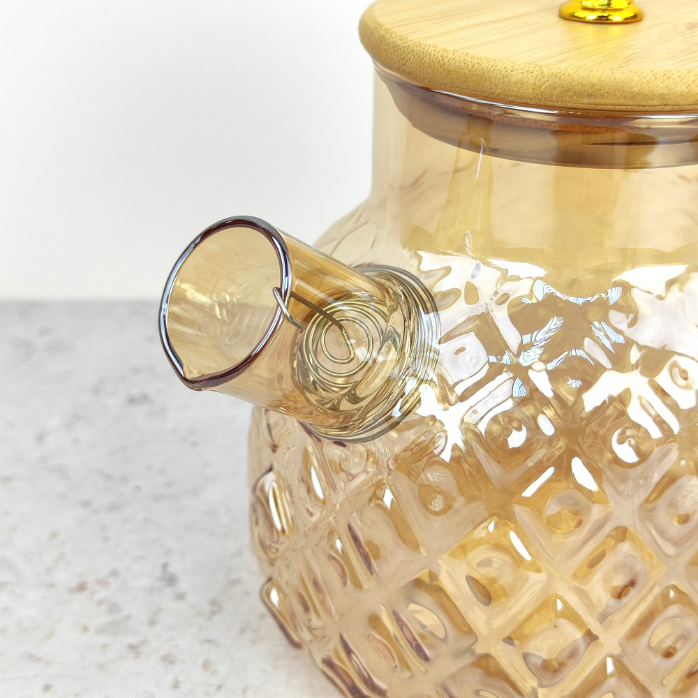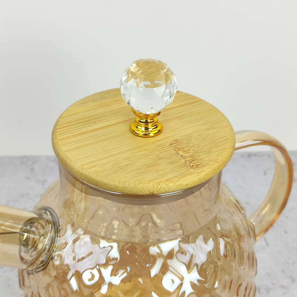 Чайник стеклянный заварочный 1000 мл крышка бамбук фильтр пружинка BZ-CH128 Baizheng