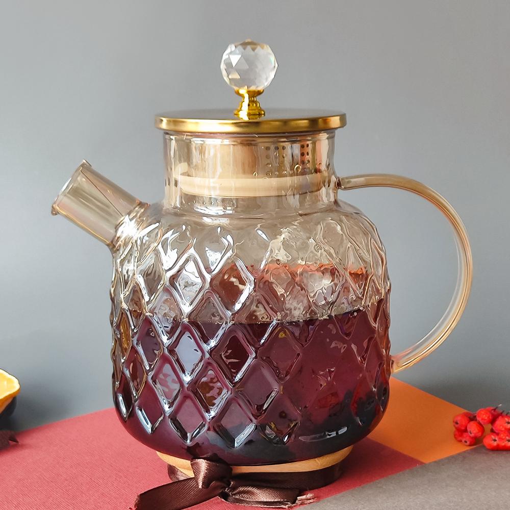 Чайник стеклянный заварочный 1500 мл крышка металл фильтр пружинка BZ-CH102 Baizheng