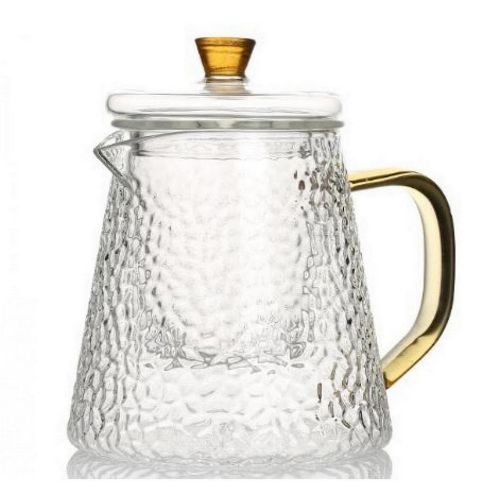 Чайник стеклянный заварочный 900 мл крышка стекло ситечко стекло прозрачно-золотой Baizheng