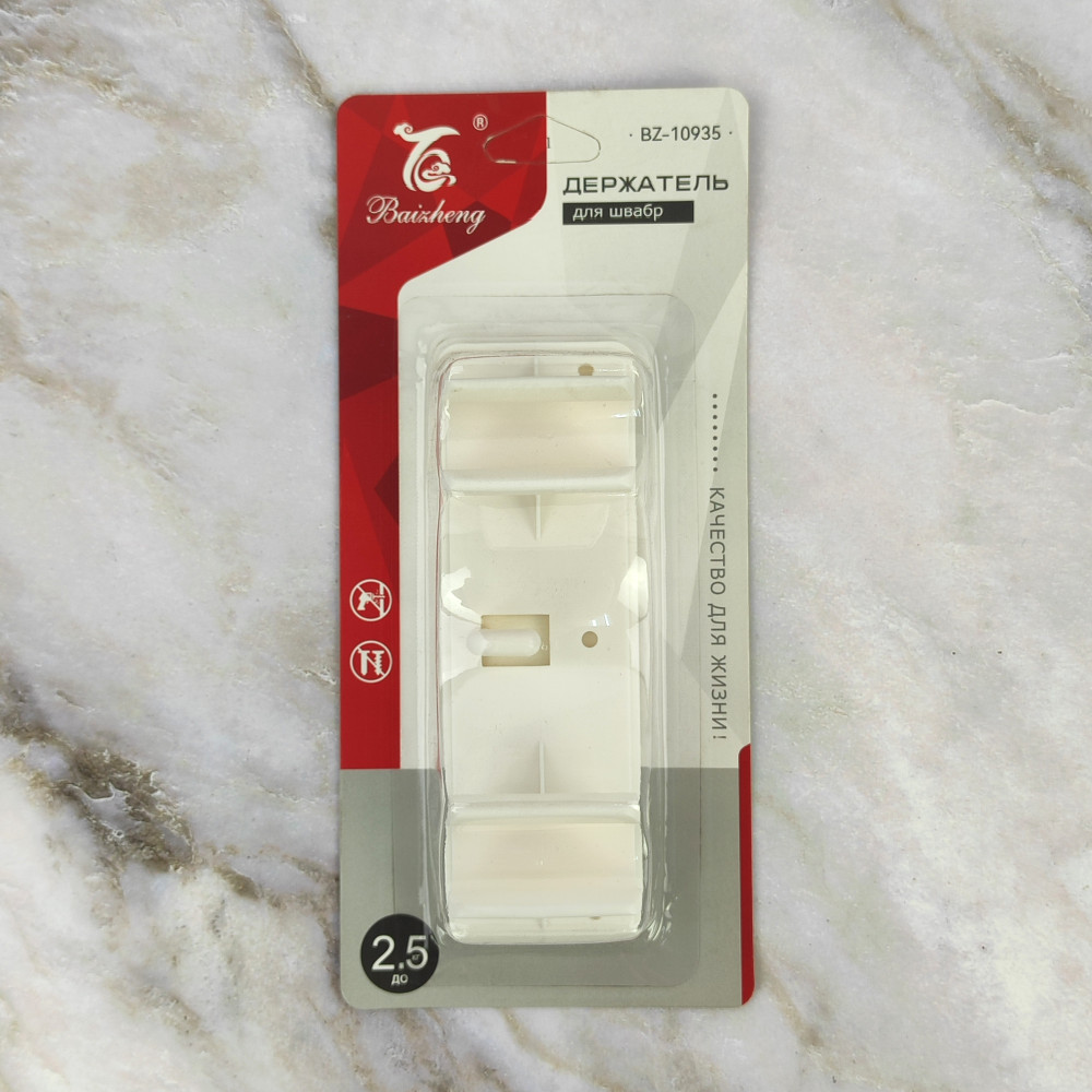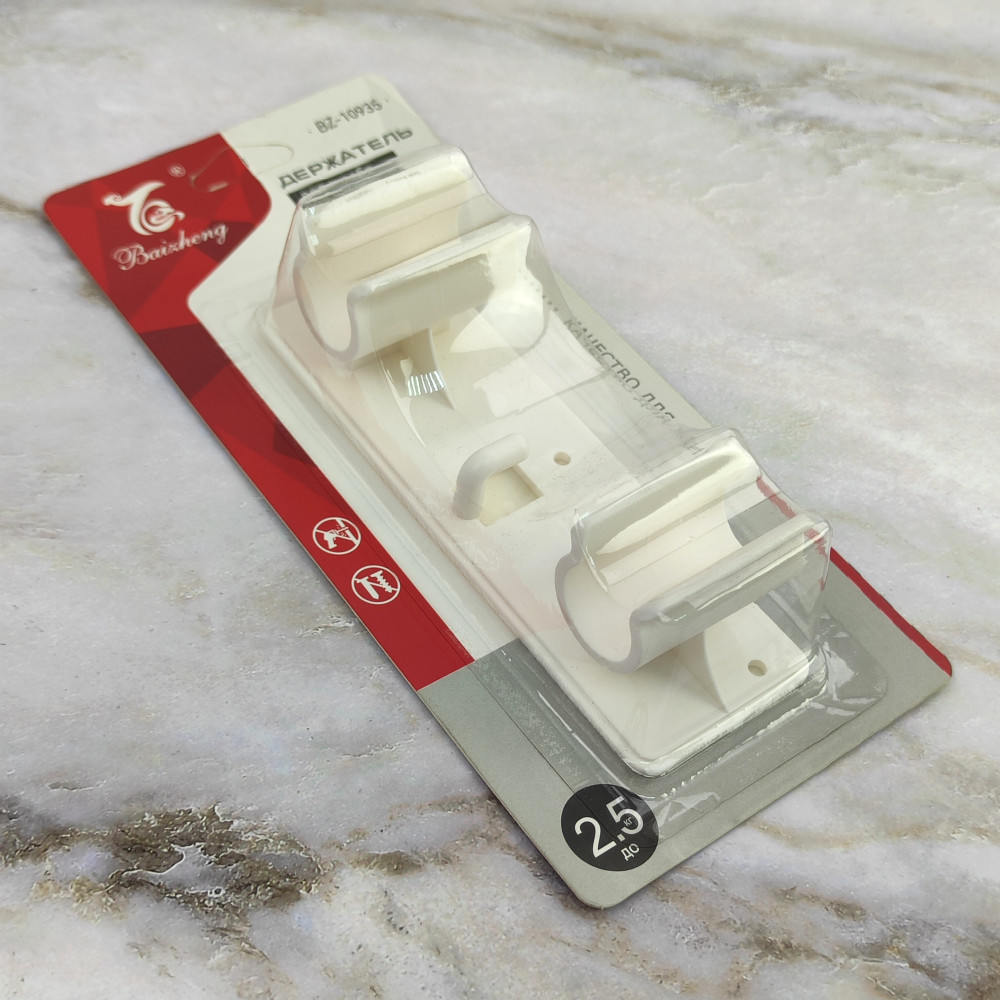 Держатель пластиковый для швабр на планке 13х4,2х3,8 см самоклеящийся на 2 предмета Baizheng