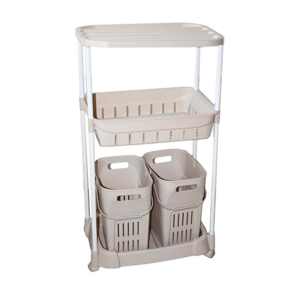 Этажерка на колёсах 3 секции, прямоуг., пластик. S8586B-3