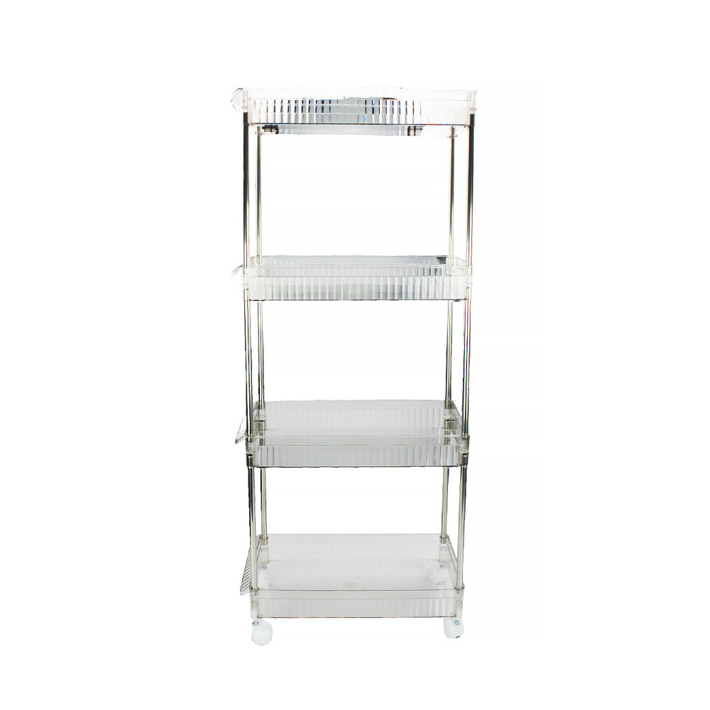 Этажерка пластиковая 4-х ярусная 38,5*20,5*86 см на колесах прозрачный Baizheng