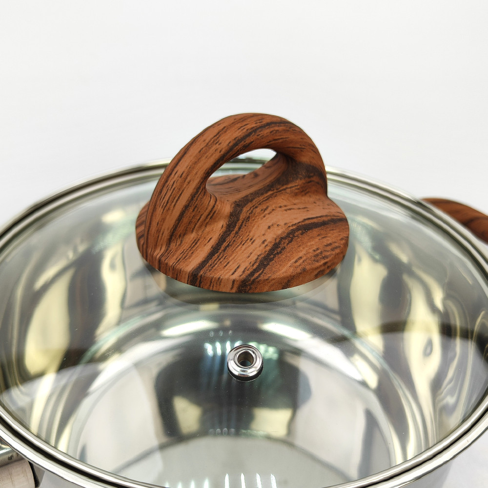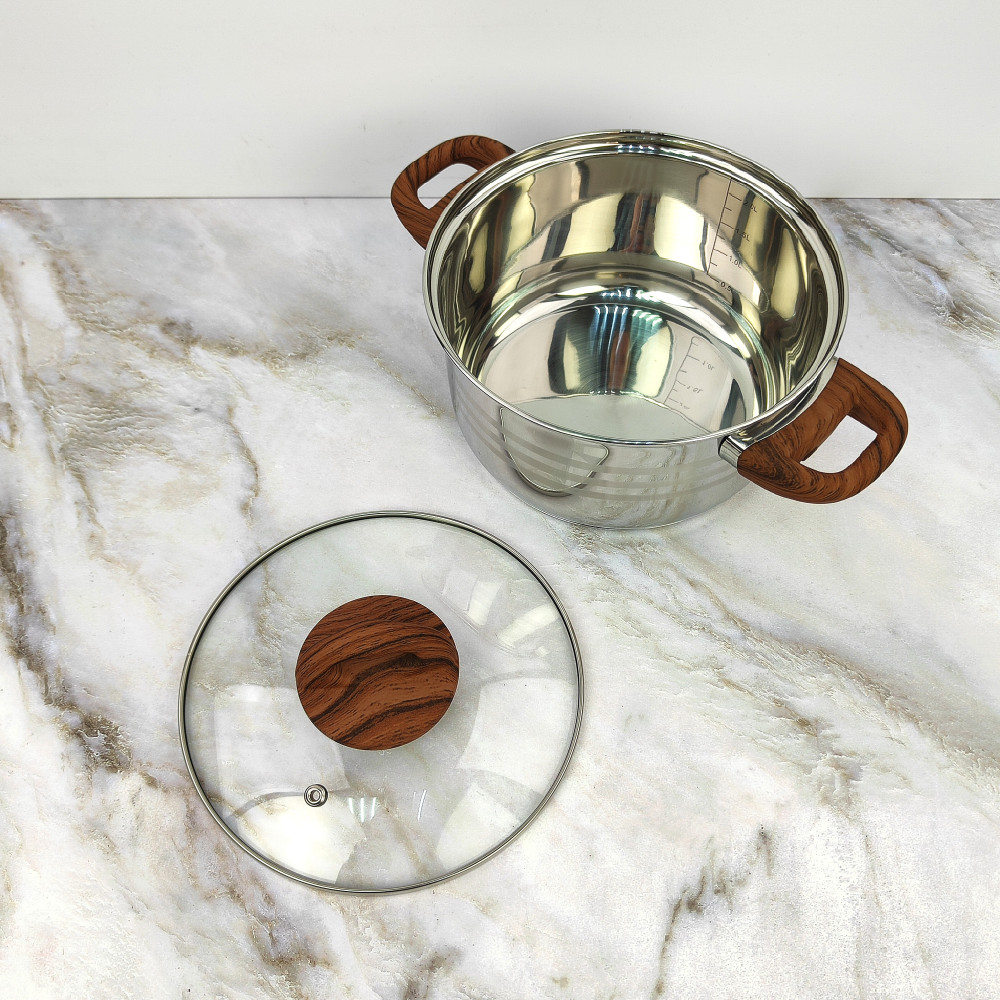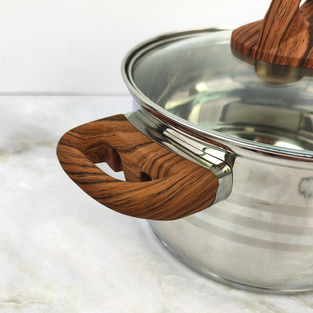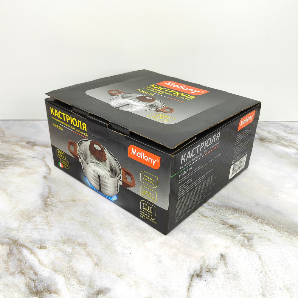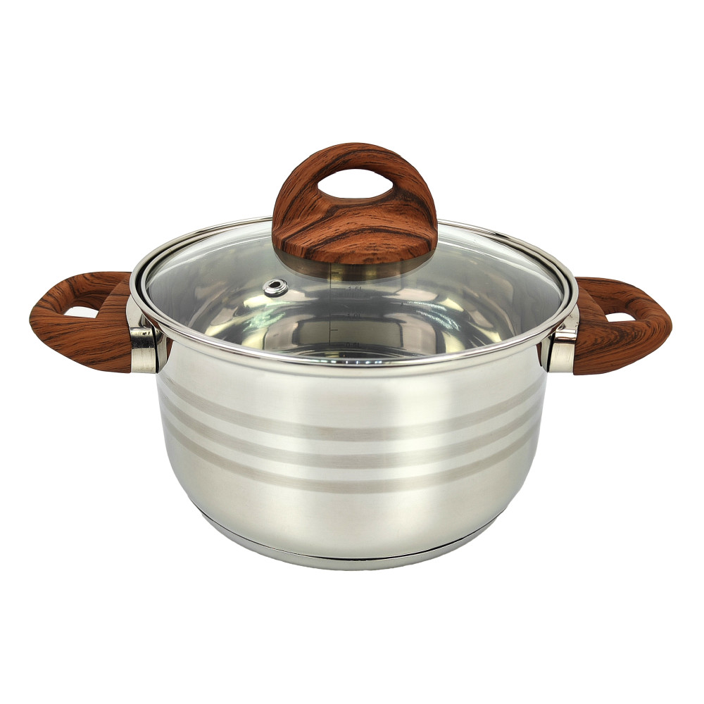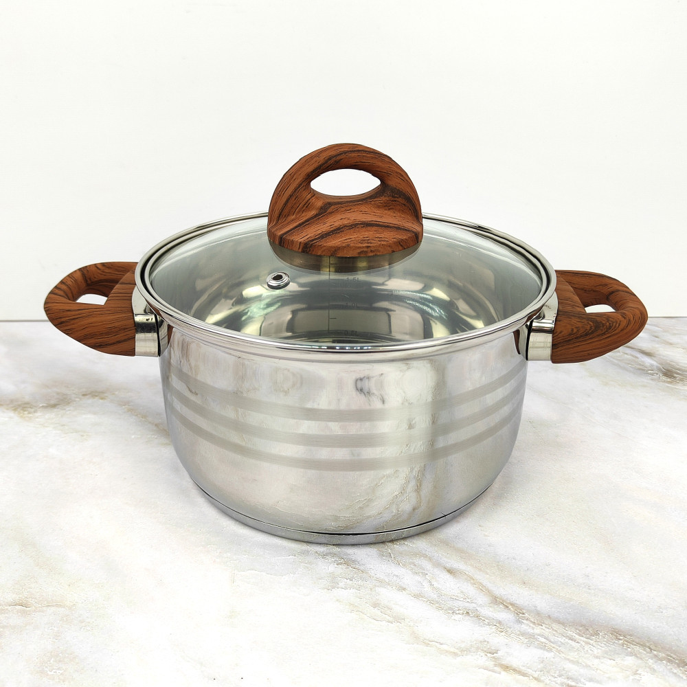 Кастрюля нерж сталь 2,5 л 18 см стекл крышка ручками под дерево soft-touch Foresta Mallony
