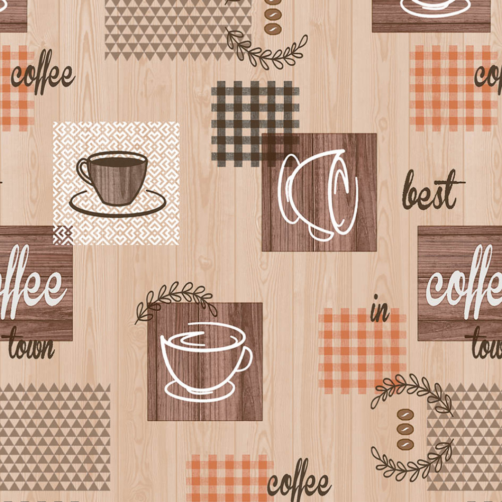 Клеенка ПВХ нетканая основа 1,4*20 м чашки кофейные на бежевом рис 147B Dekorama