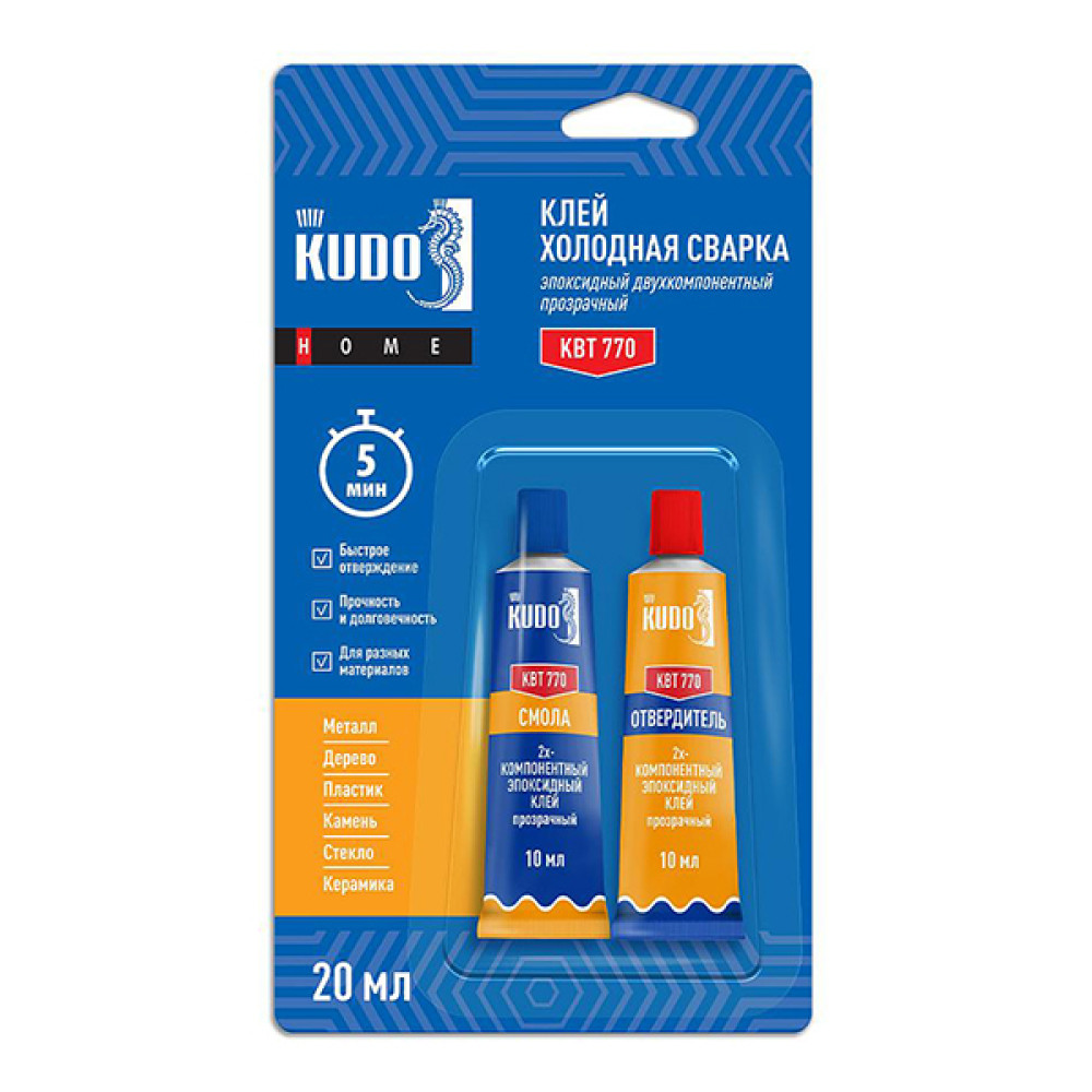 Клей холодная сварка Kudo Home эпоксидный двухкомпонентный прозрачный 20мл