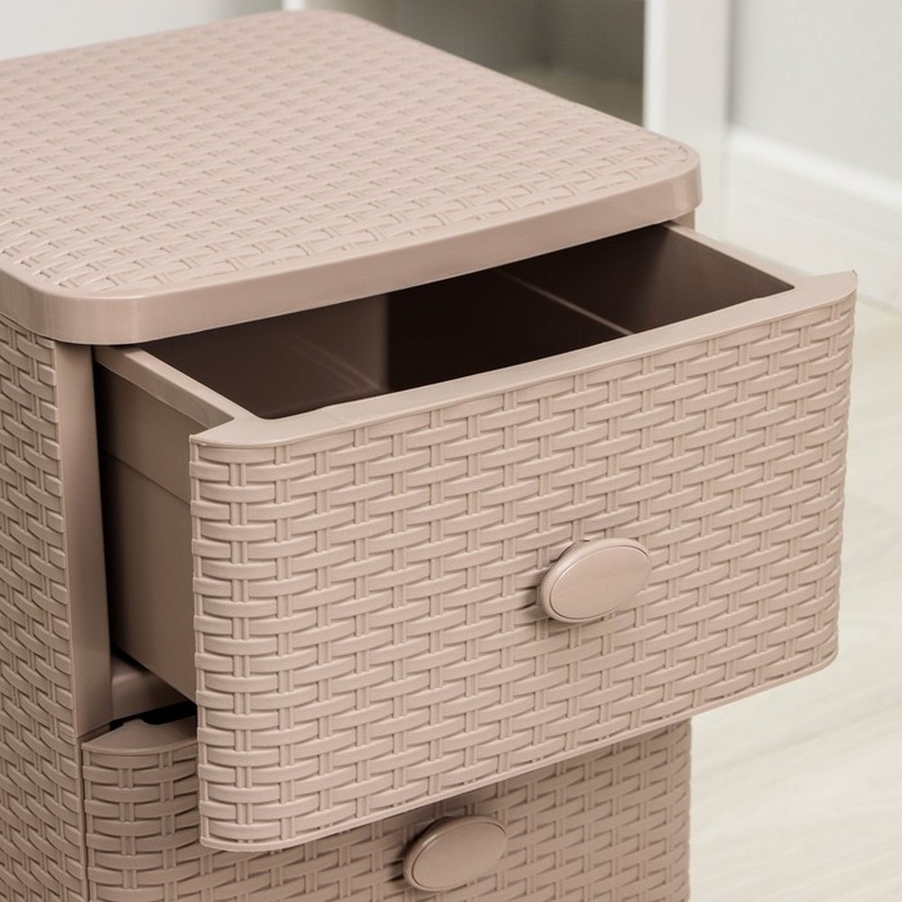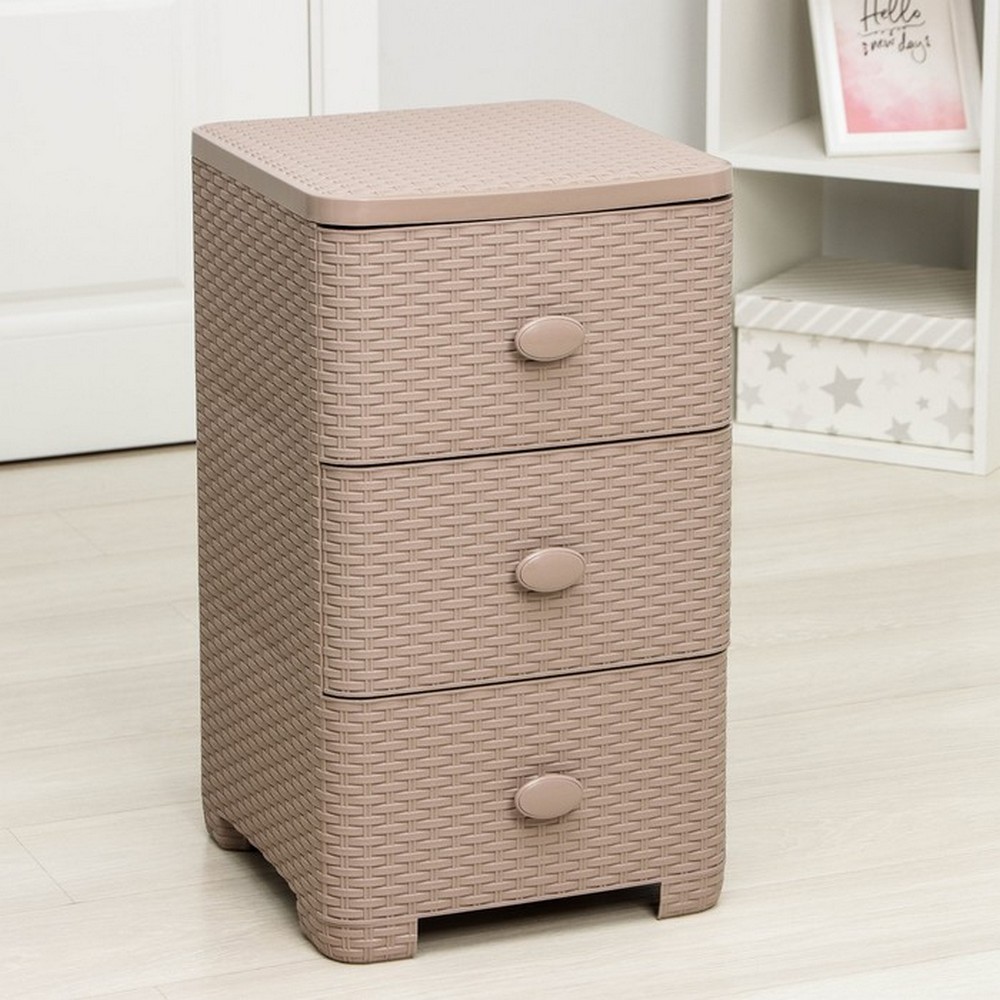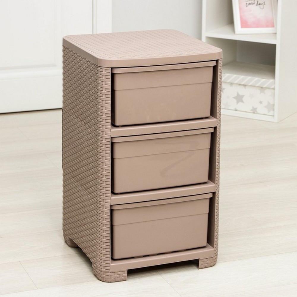 Комод пластиковый 3-х секционный 375*360*630 мм какао Плетенка Альтернатива