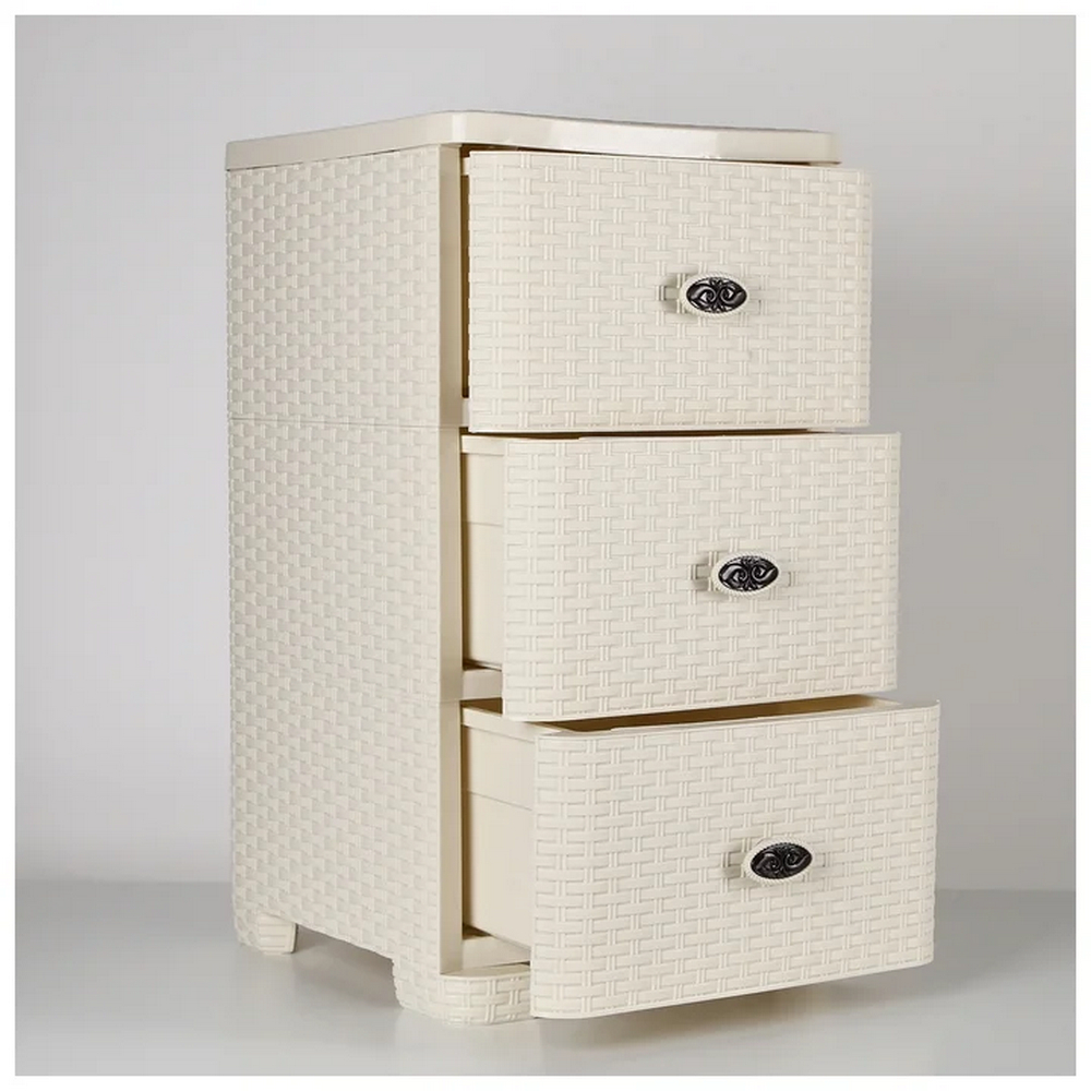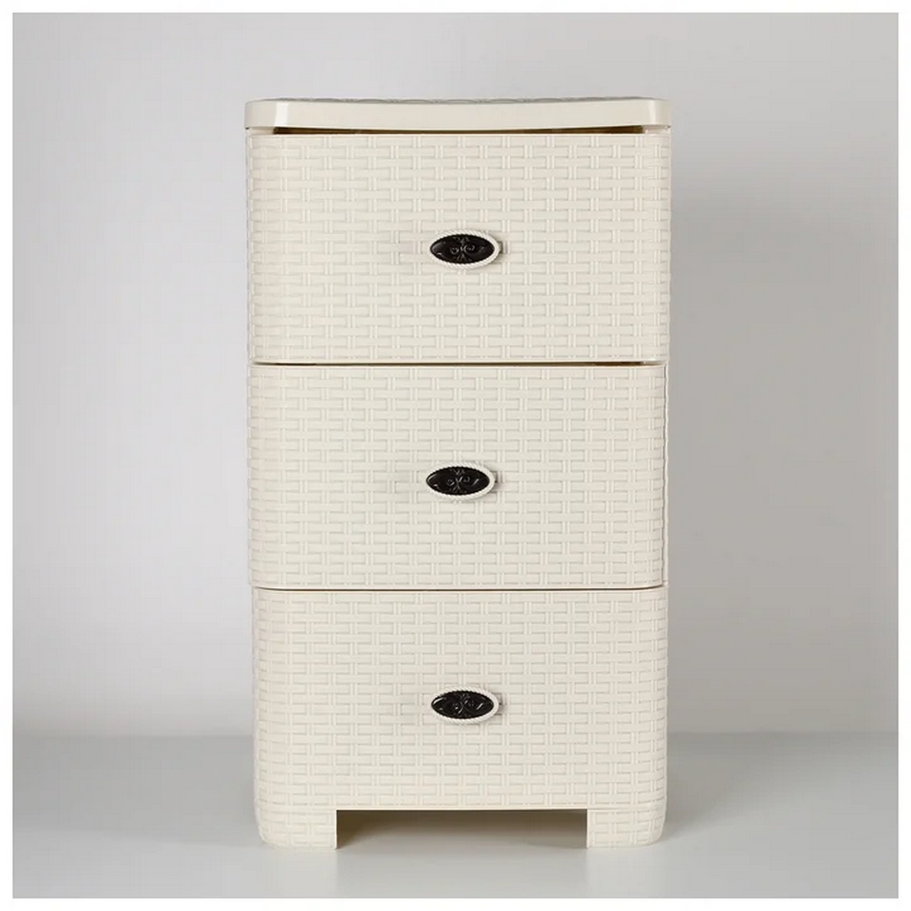 Комод пластиковый 3-х секционный 375х360х630 мм слоновая кость Плетенка Альтернатива