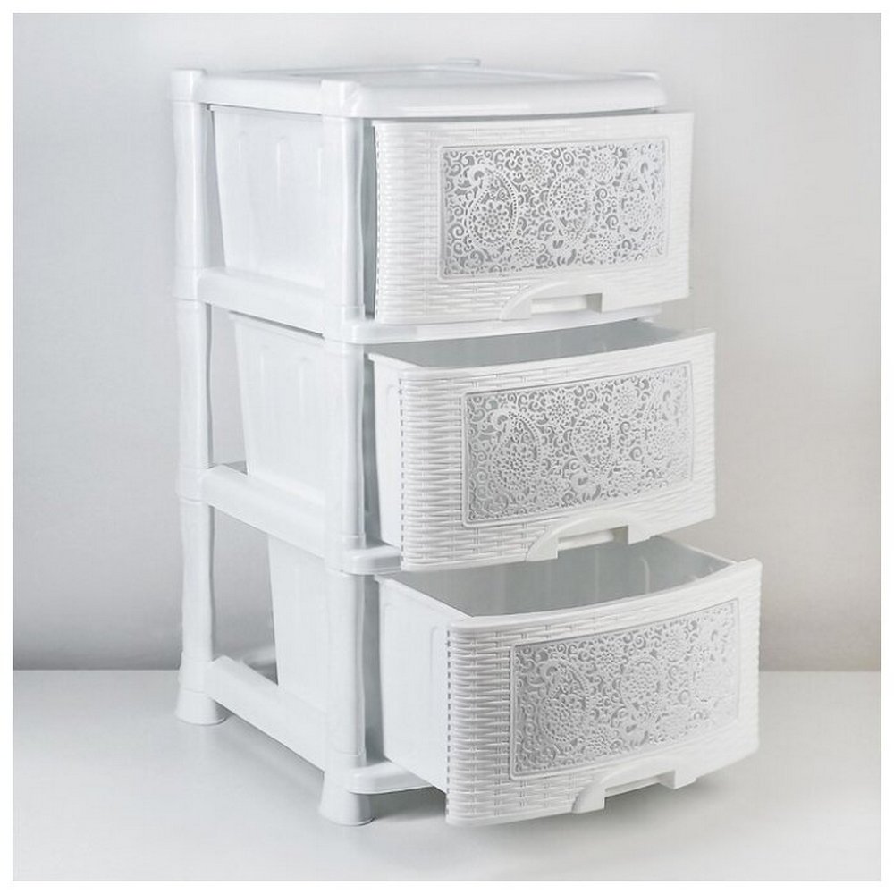 Комод пластиковый 3-х секционный 390*470*730 мм белый Ажур Violet