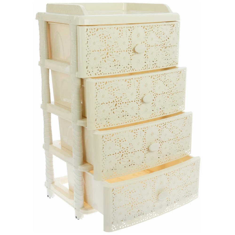 Комод пластиковый 4-х секционный 425х560х925 мм широкий слонова кость Лаура Альтернатива