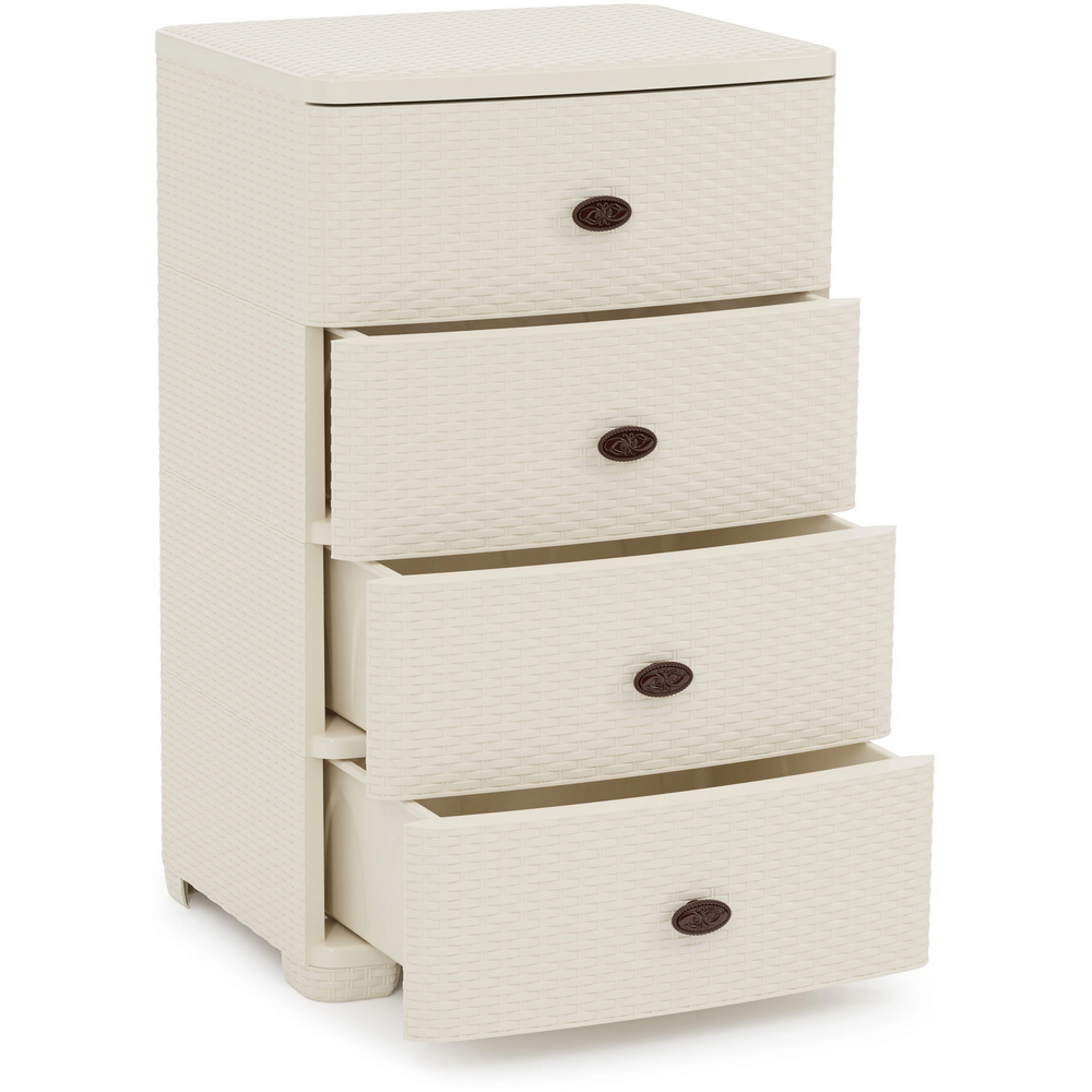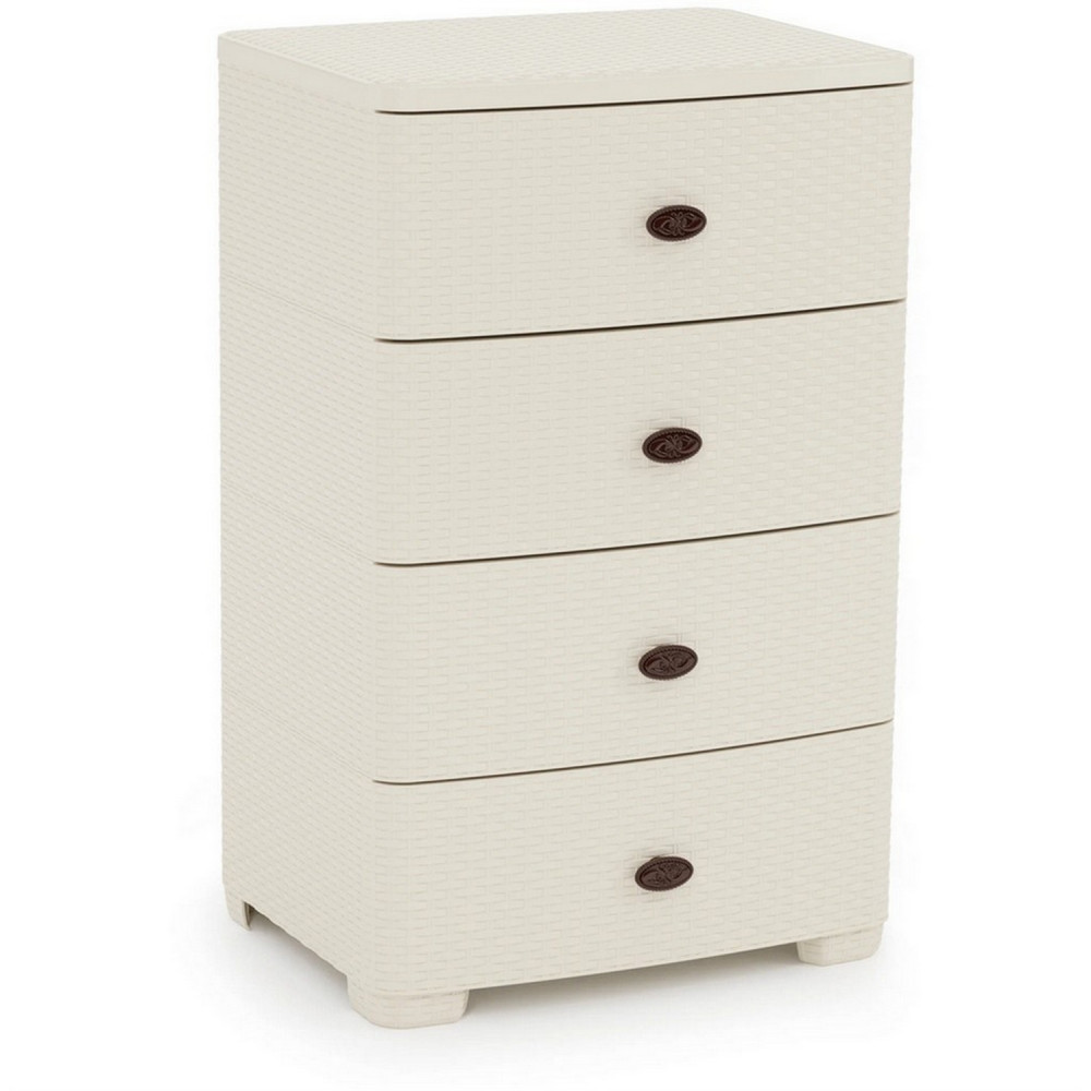 Комод пластиковый 4-х секционный 555х445х875 мм широкий слоновая кость Плетенка Альтернатива