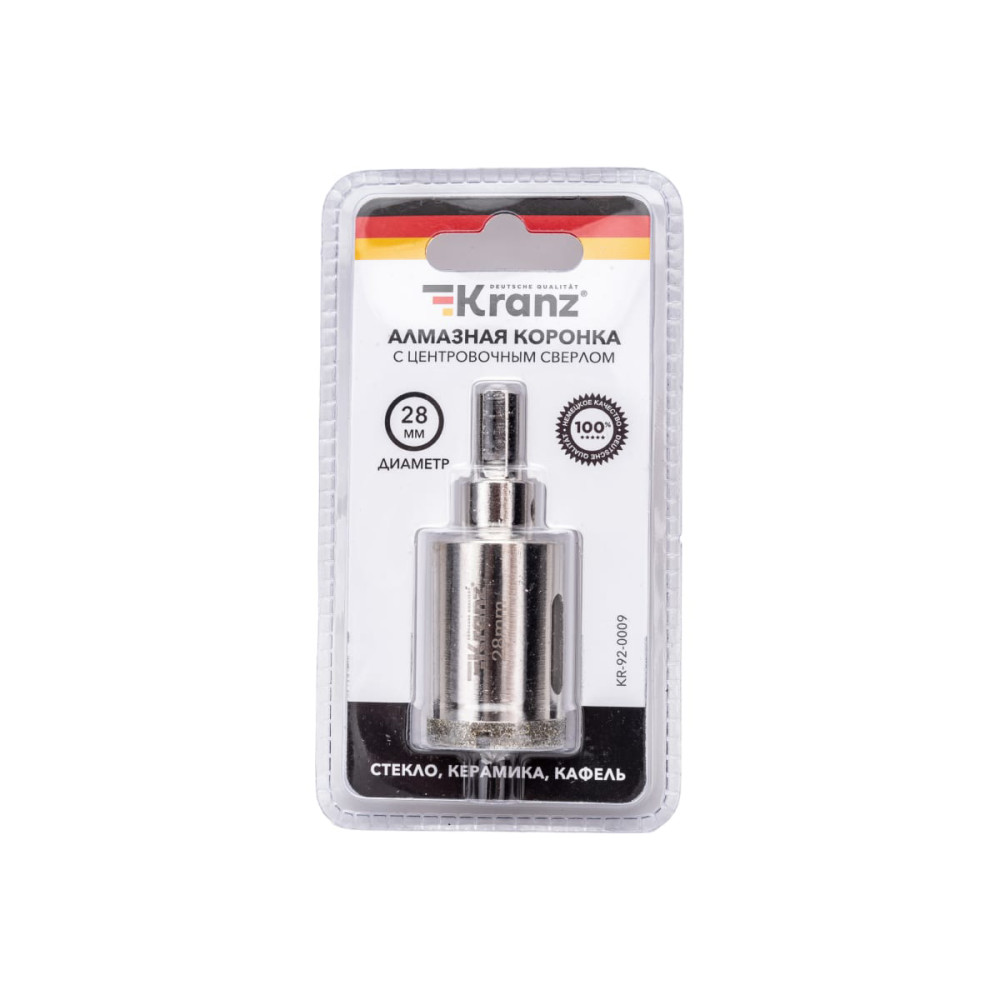 Коронка алмазная по стеклу и кафелю 28мм с центровочным сверлом KRANZ