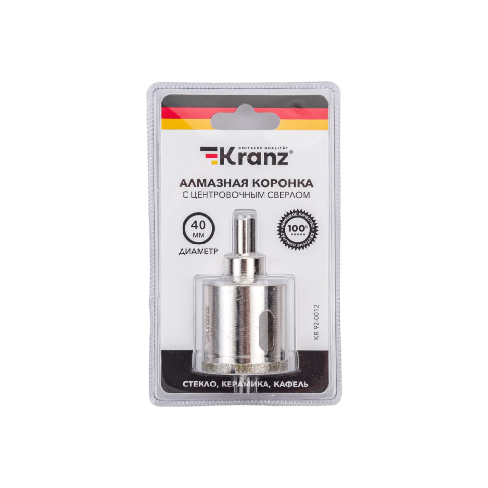 Коронка алмазная по стеклу и кафелю 40мм с центровочным сверлом KRANZ