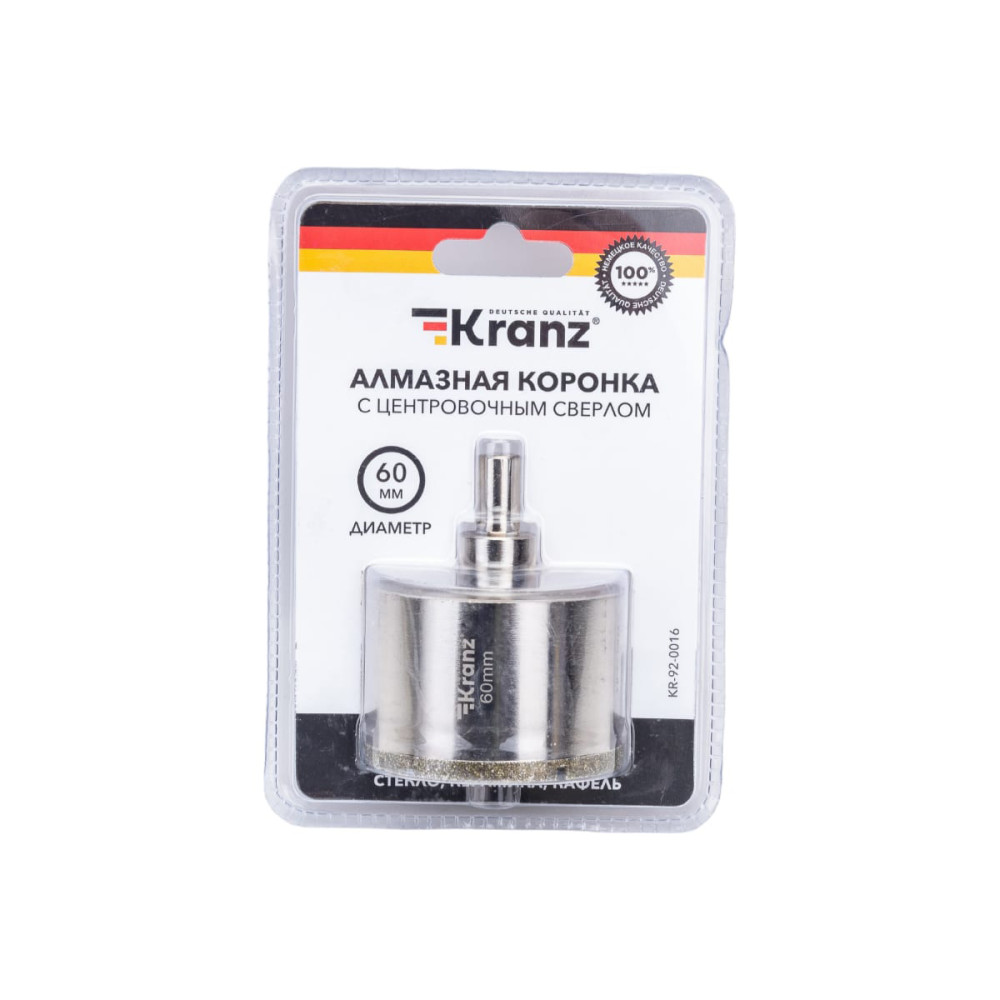 Коронка алмазная по стеклу и кафелю 60мм с центровочным сверлом KRANZ