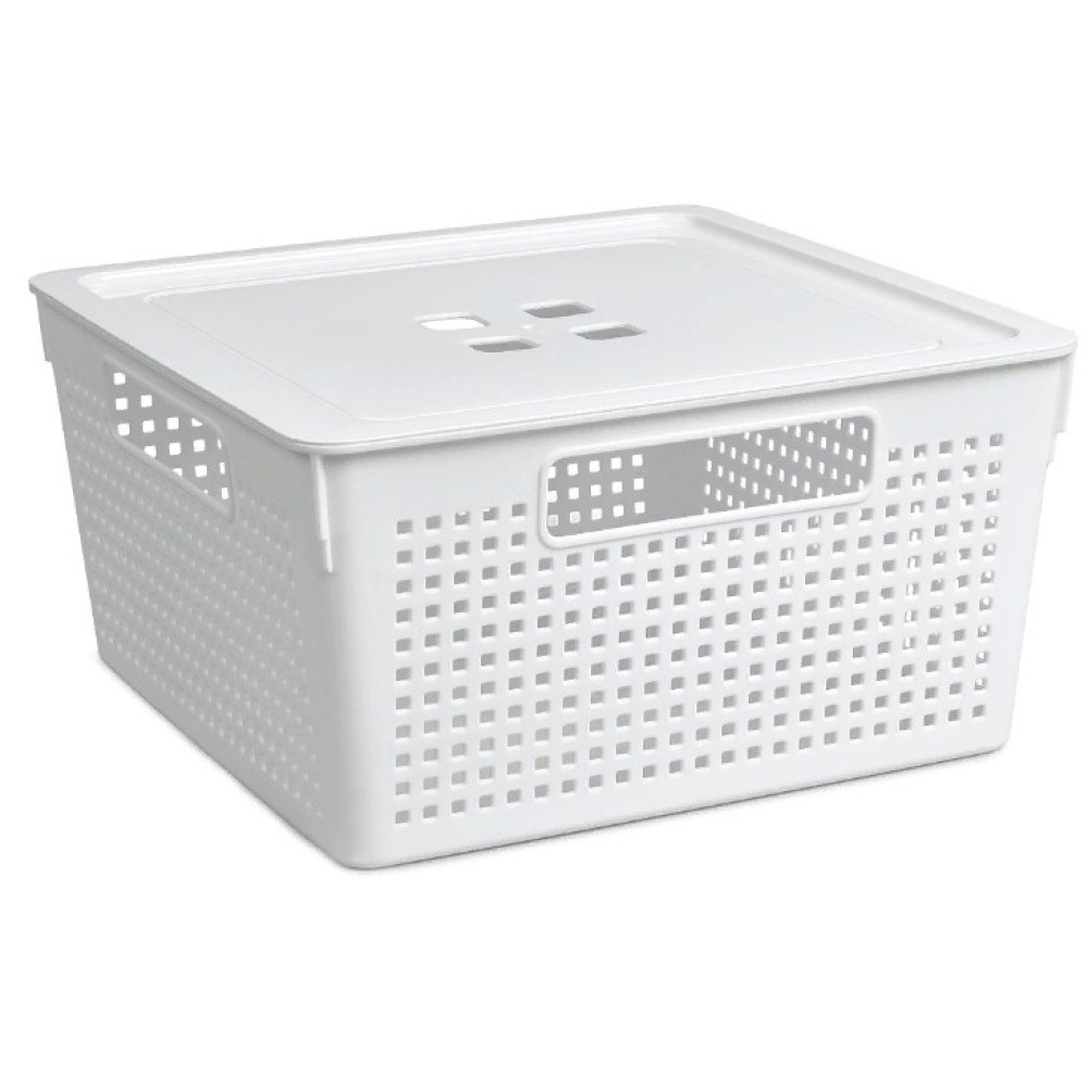 Корзина пластиковая 11 л 290х290х151 мм с крышкой белый Лофт Violet