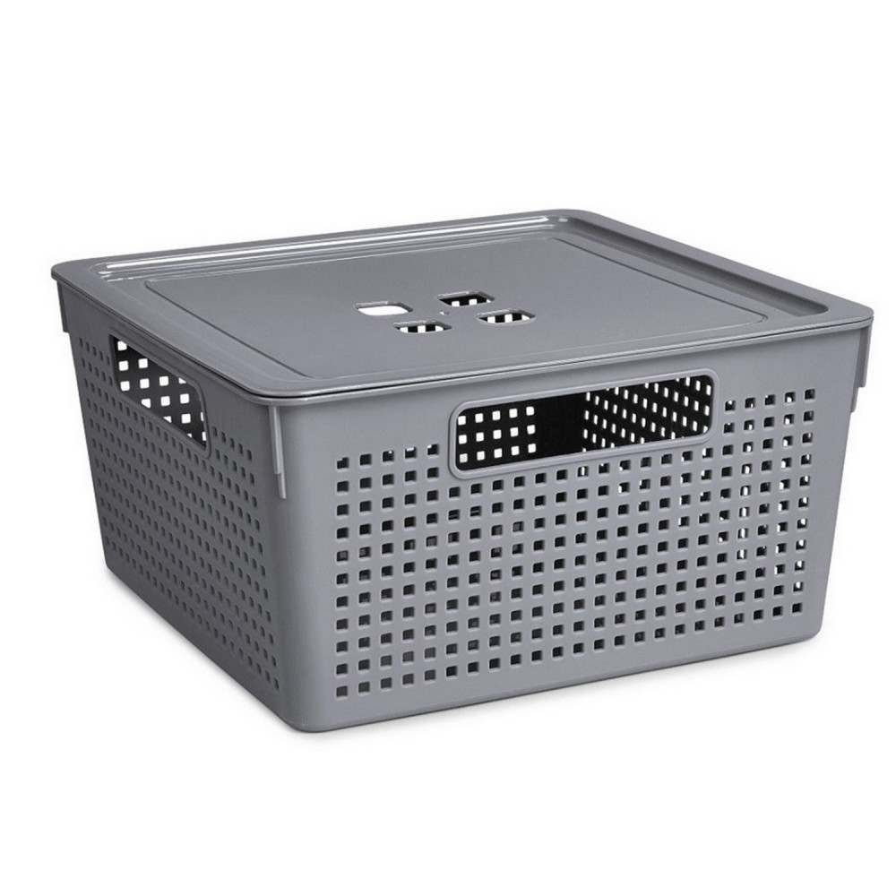 Корзина пластиковая 11 л 290х290х151 мм с крышкой серый Лофт Violet