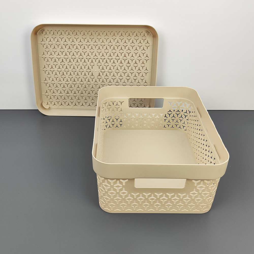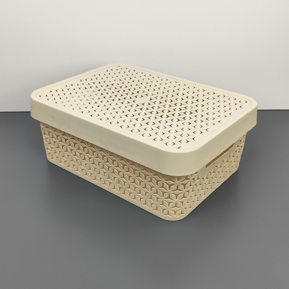 Корзина пластиковая 11 л 370*280*140 ммс крышкой бежевый Элемент Альтернатива