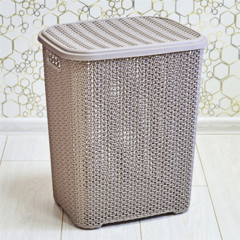 Корзина пластиковая для белья 40 л 380*320*460 мм с крышкой шоколад Вязь Violet