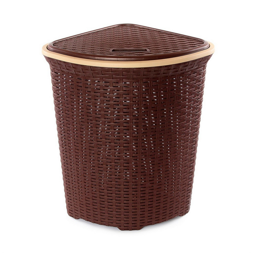 Корзина пластиковая для белья 60 л 405*405*570 мм угловая с крышкой коричневый Ротанг Violet