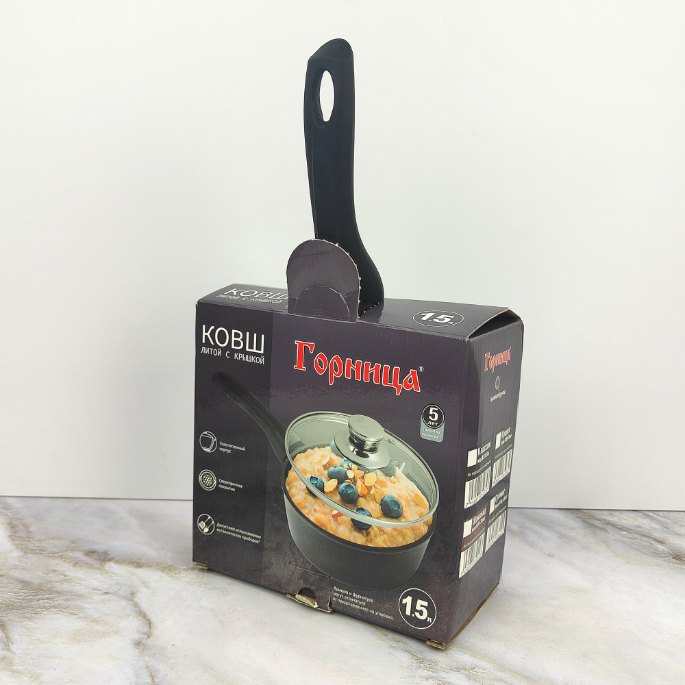 Ковш алюминиевый 1,5 л стекл крышка под упак Классик Горница