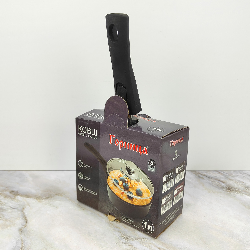 Ковш алюминиевый 1 л съемная ручка стекл крышка под упак Классик Горница
