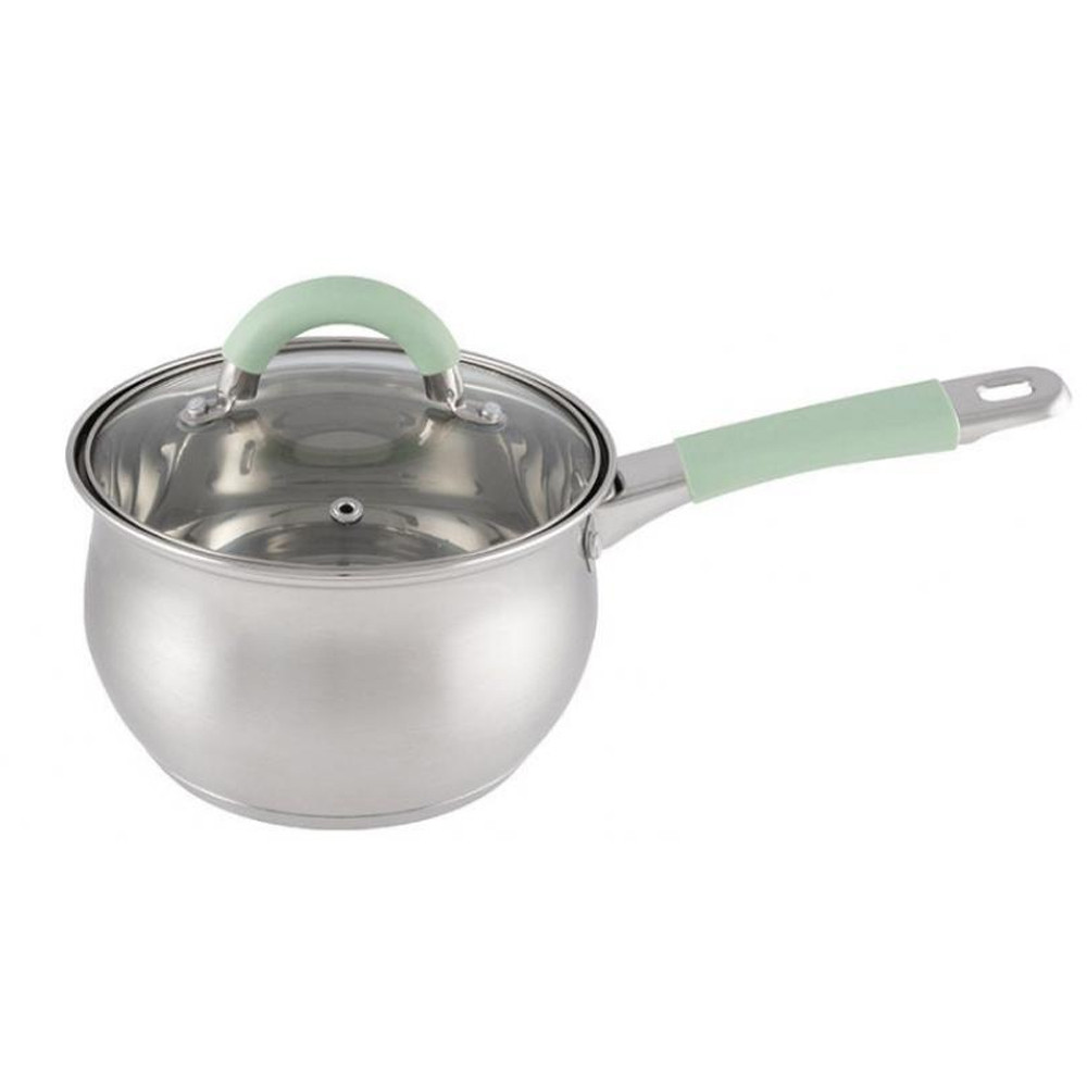 Ковш нерж сталь 1,9 л 16 см стекл крышка силикон ручка индукция Mentolo Mallony