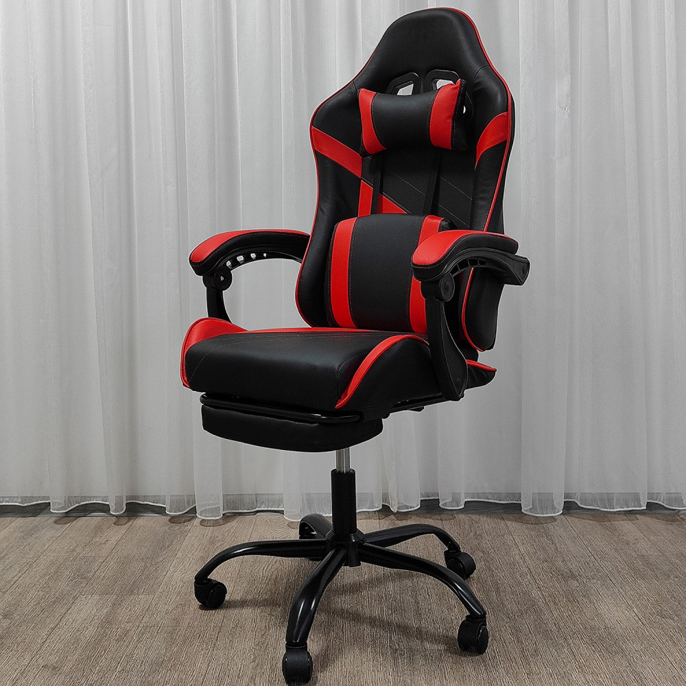 Кресло компьютерное игровое 124*64*50 см до 150 кг с подставкой черно-красный Baizheng
