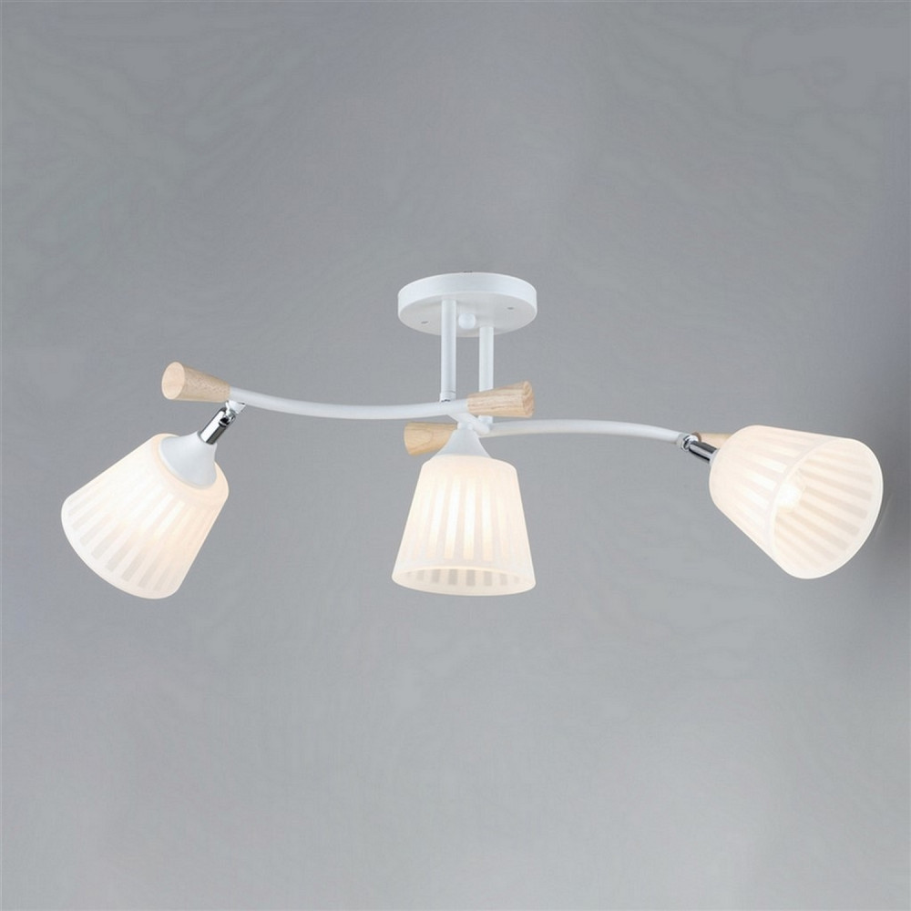 Светильник спот 3 плафона 64*20*25 см Е27 60Вт 12м2 плафон стекло белый-дерево Baizheng