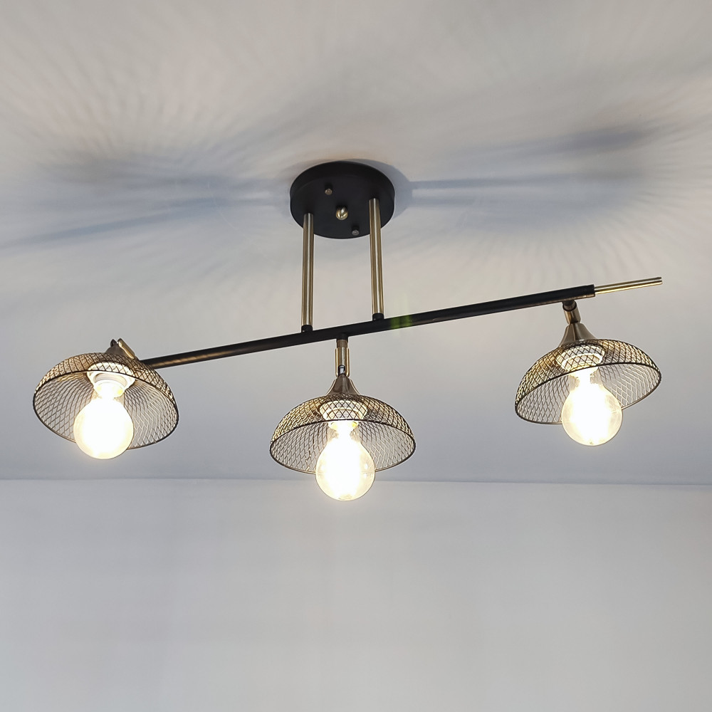 Светильник спот 3 плафона 68*33*30 см Е27 60Вт 12м2 плафон металл черный Baizheng