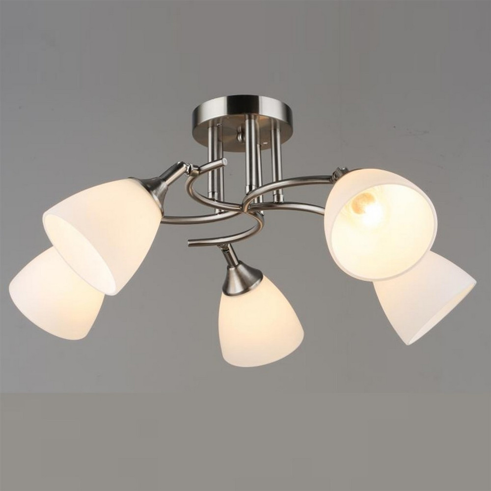 Люстра 5 плафонов 59*24 см Е27 60Вт 20м2 плафон стекло серебро Baizheng