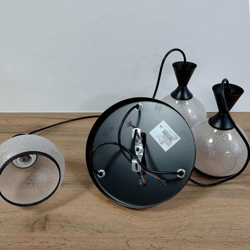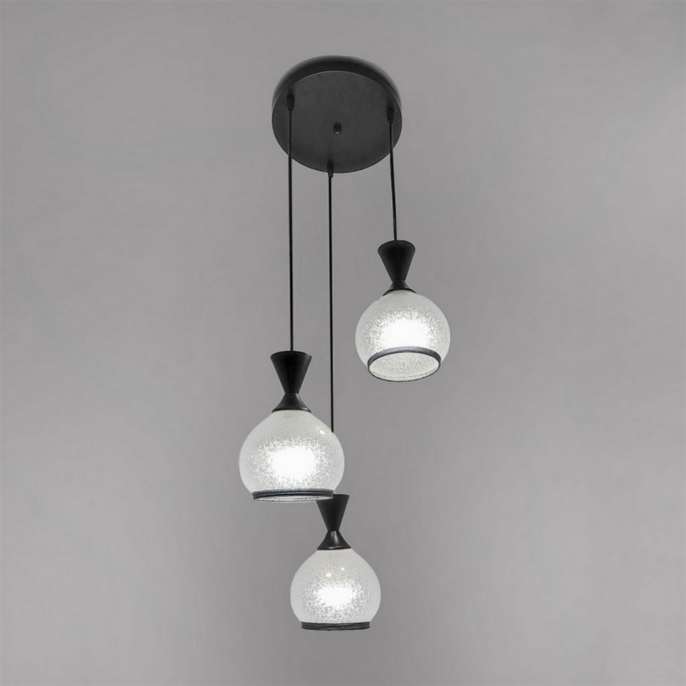 Люстра кухонная 3 плафона 35*100 см Е27 60Вт 12м2 плафон стекло черный Baizheng