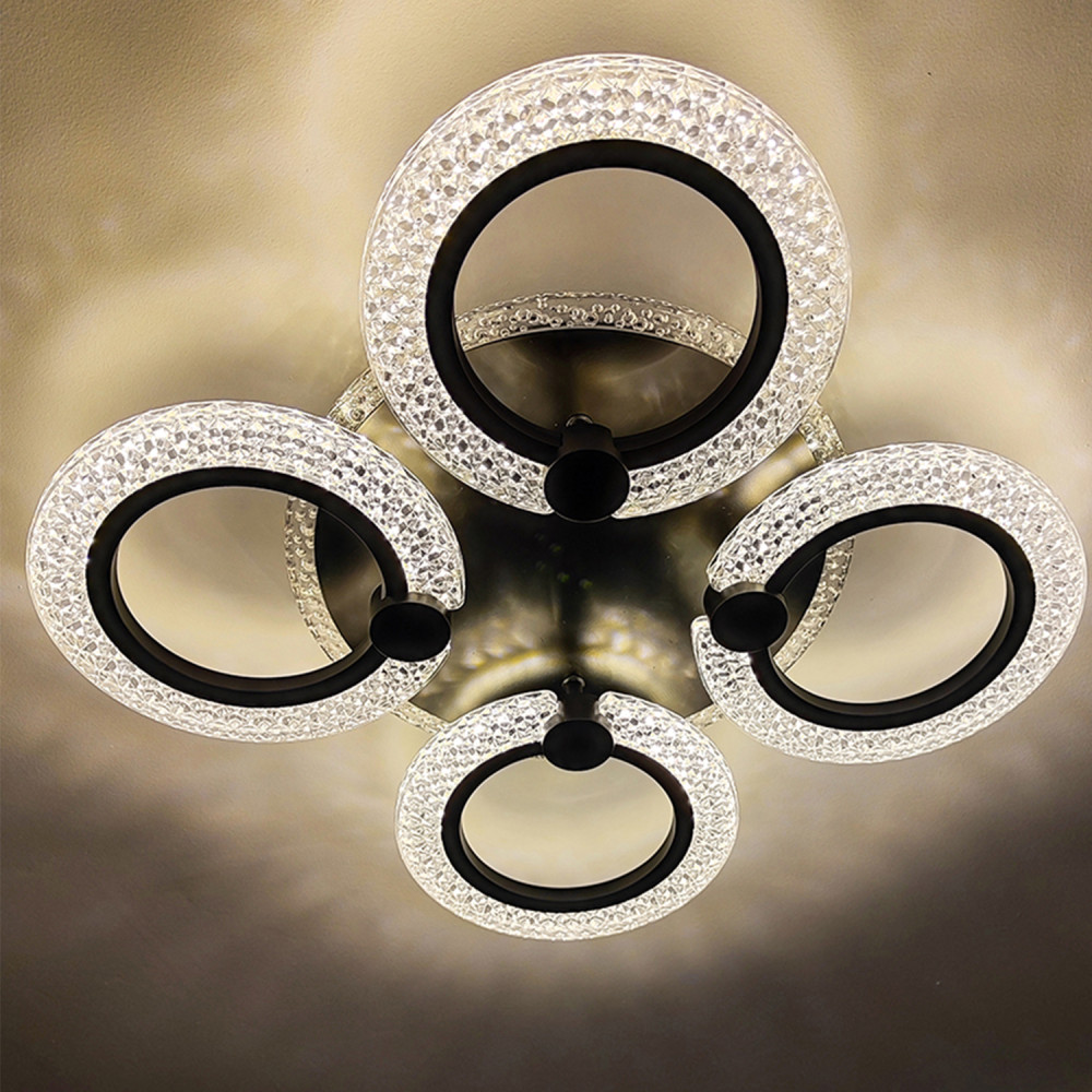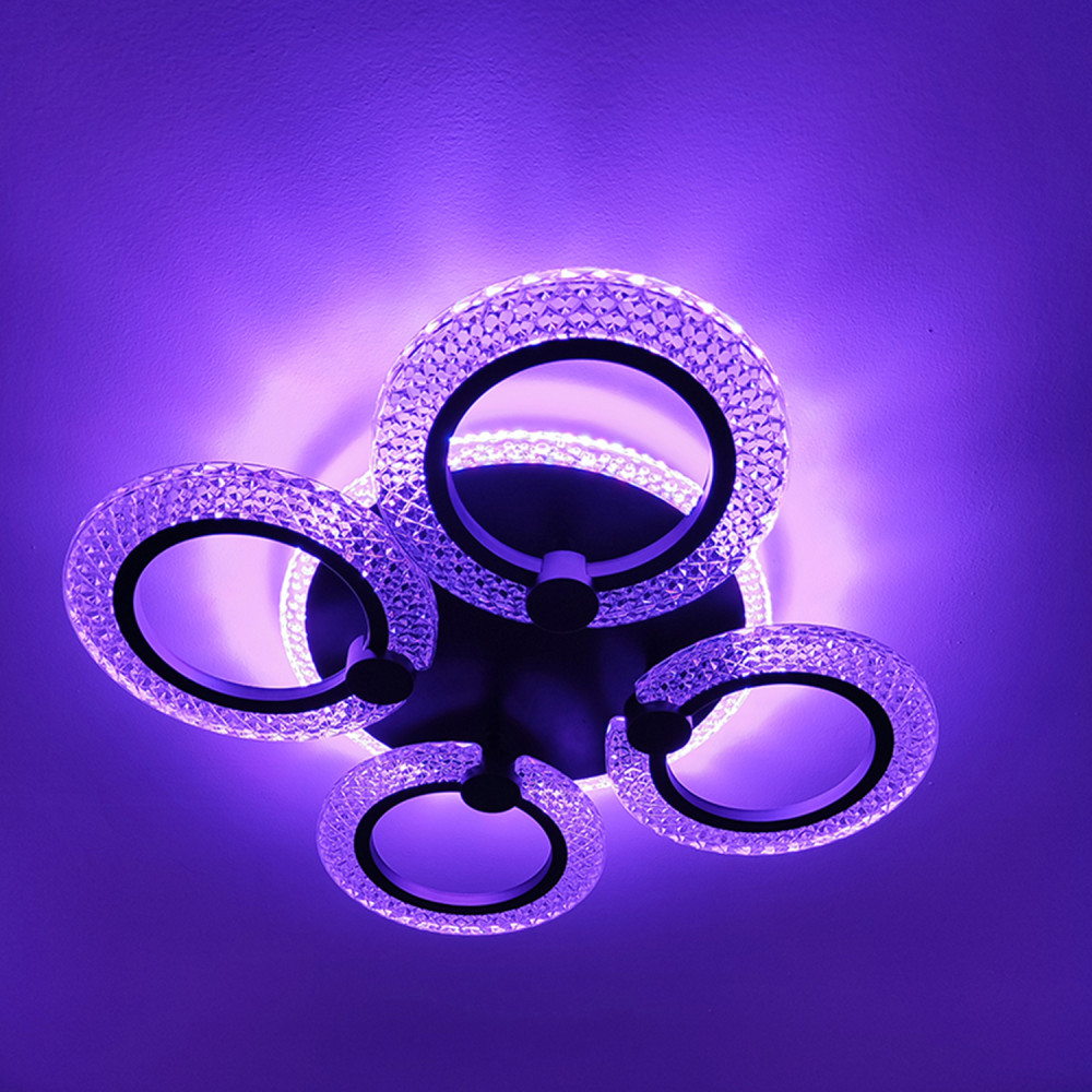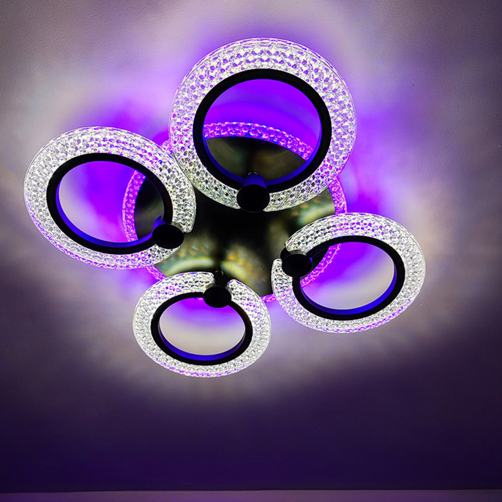 Люстра светодиодная 4 плафона 52*9 см 56Вт 2100LM 15м2 3 цвета прилож пульт черный Baizheng