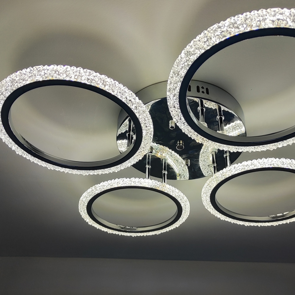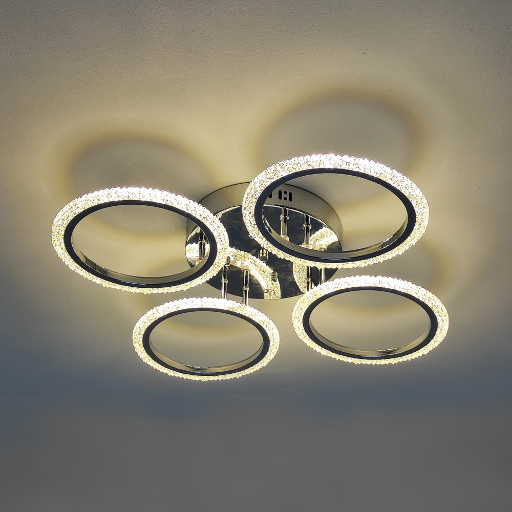 Люстра светодиодная 4 плафона 68,3*8 см 96Вт 3600LM 20м2 3 цвета прилож пульт хром Baizheng