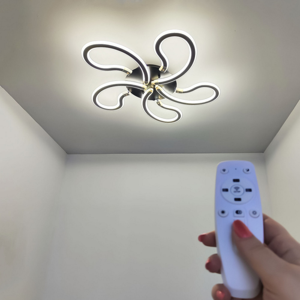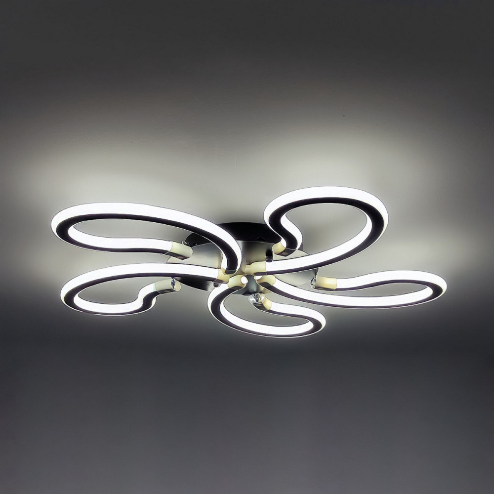 Люстра светодиодная 5 плафонов 57*13 см 200Вт 14000LM 20м2 3 цвета прилож пульт черный Baizheng
