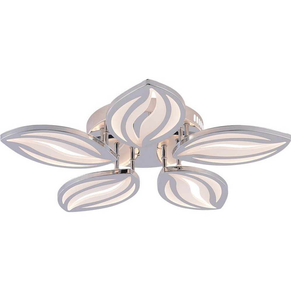 Люстра светодиодная 5 плафонов 57*8,5 см 100Вт 5100LM 45м2 3 цвета пульт пластик хром Baizheng