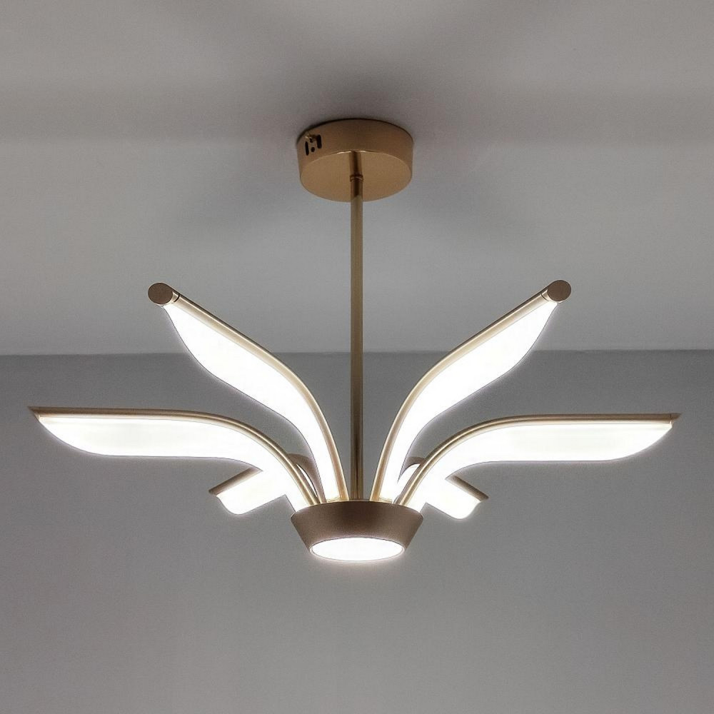 Люстра светодиодная 6 плафонов 65*38см 72Вт 9000LM 30м2 3 цвета пульт золото Baizheng