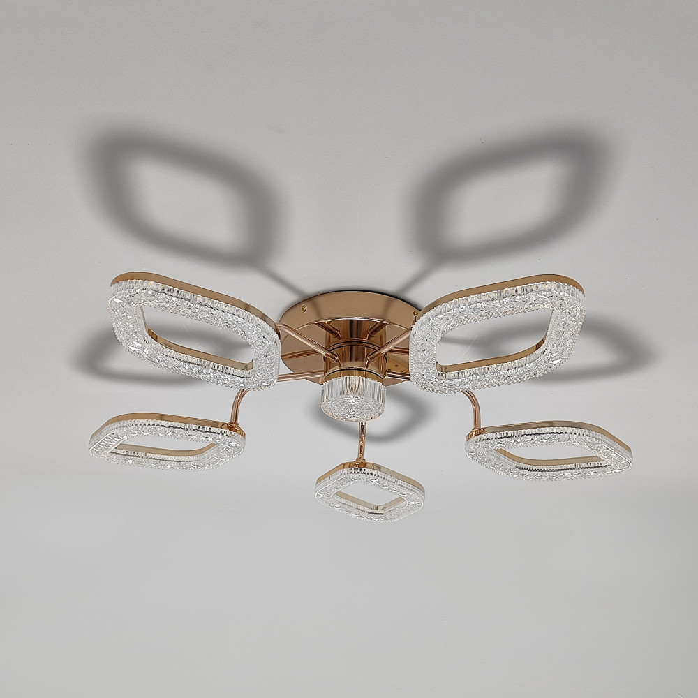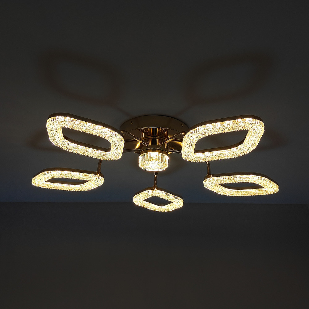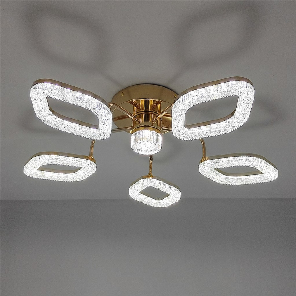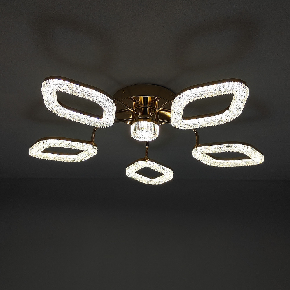 Люстра светодиодная 6 плафонов 80*15 см 55Вт 13750LM 25м2 3 цвета пульт золото Baizheng