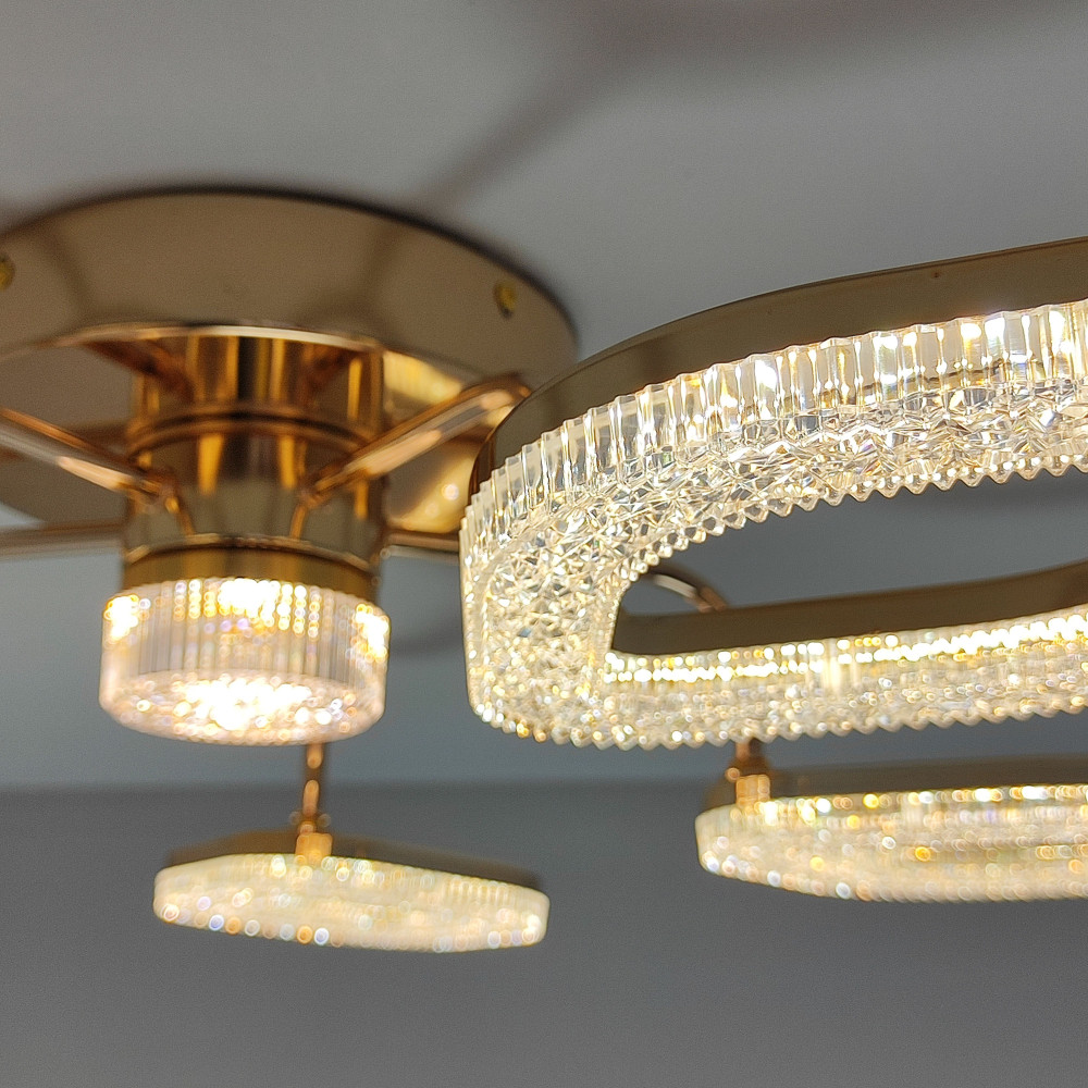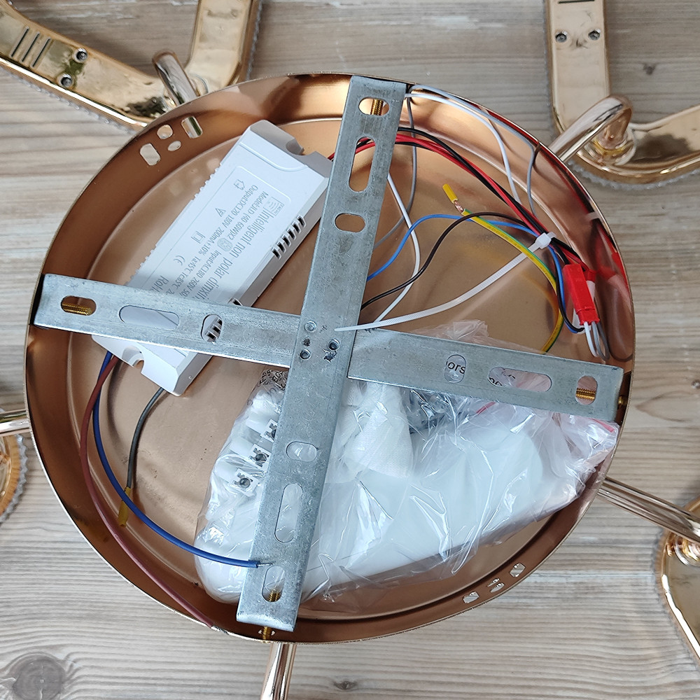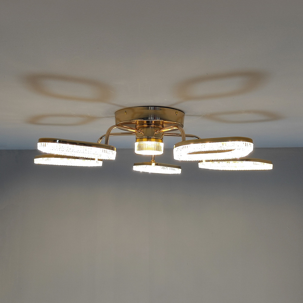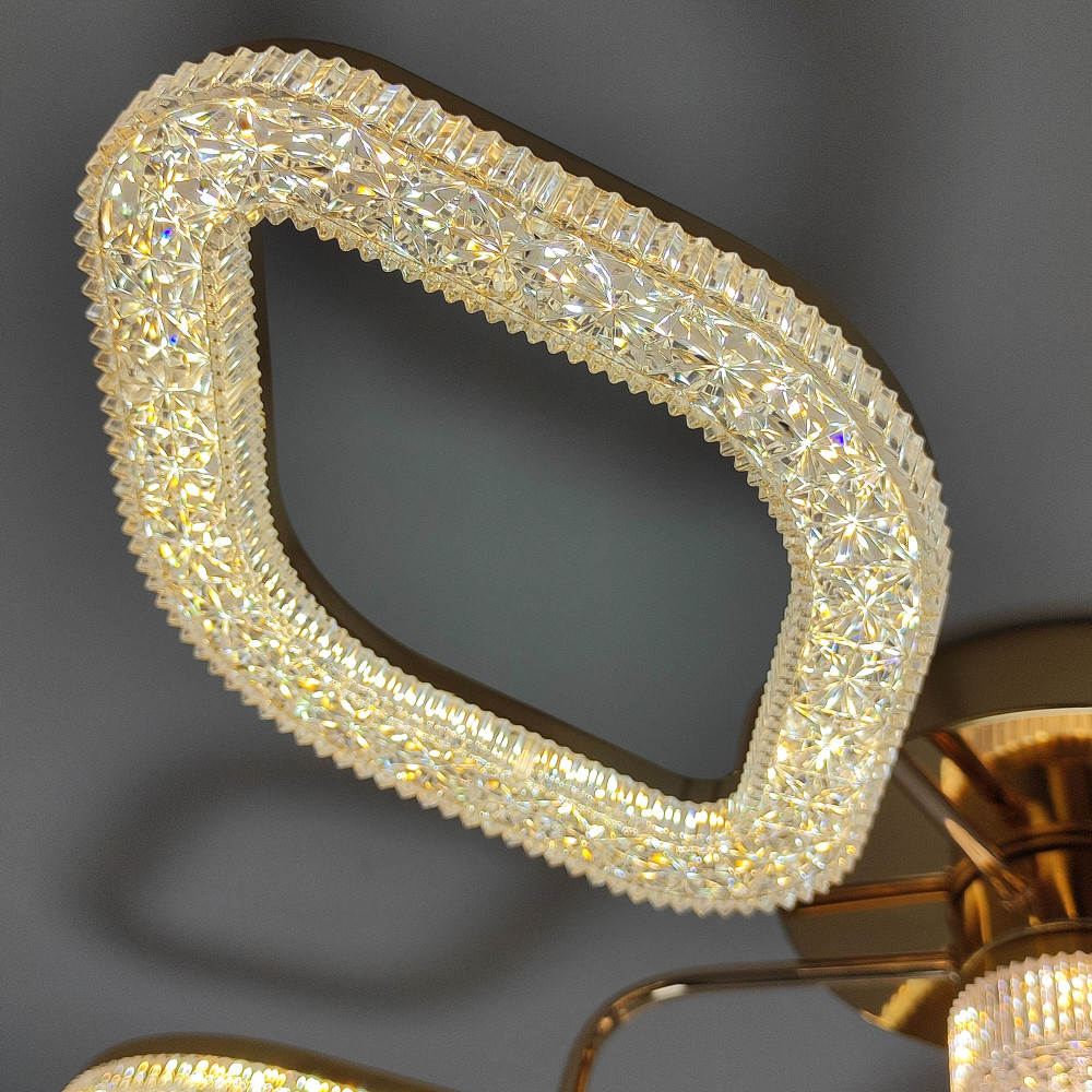 Люстра светодиодная 6 плафонов 80*15 см 55Вт 13750LM 25м2 3 цвета пульт золото Baizheng